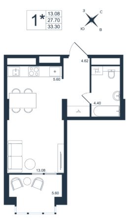 • Минимальная площадь: 13 м²