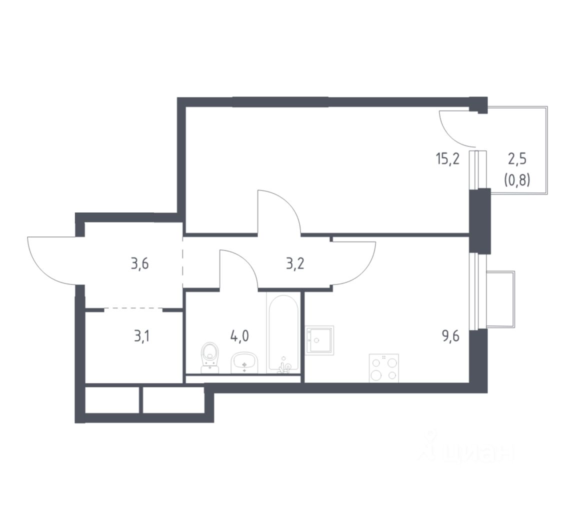 В продаже 1-комнатная квартира в корпусе 3 ЖК 'Сабанеева 125'. Квартира располагается на 4 этаже, общая площадь 39.5 м2.