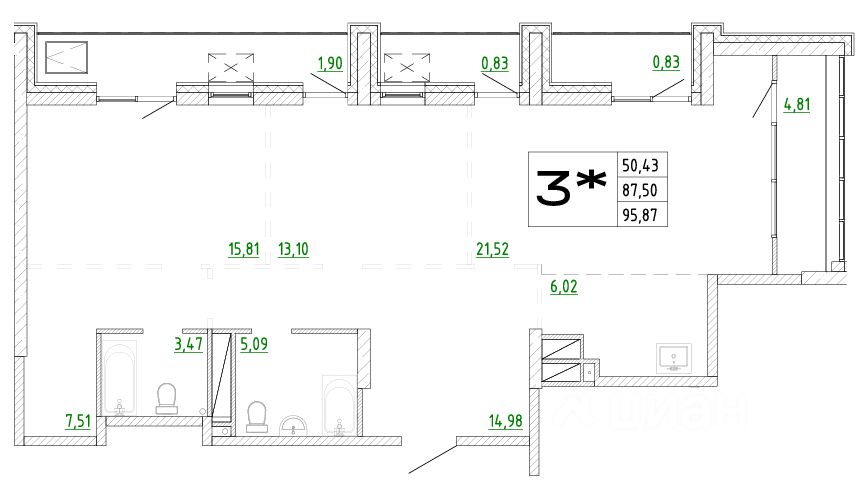 Продаётся 3-комнатная квартира в строящемся доме (Дом 1), срок сдачи: III-кв. 2027, общей площадью 95.87 кв.м., на 5 этаже. Новый жилой комплекс ''Архитектор'' от группы компаний ''Девелопмент-Юг'' расположен по адресу: г. Владивосток, по ул. Бежецкая.