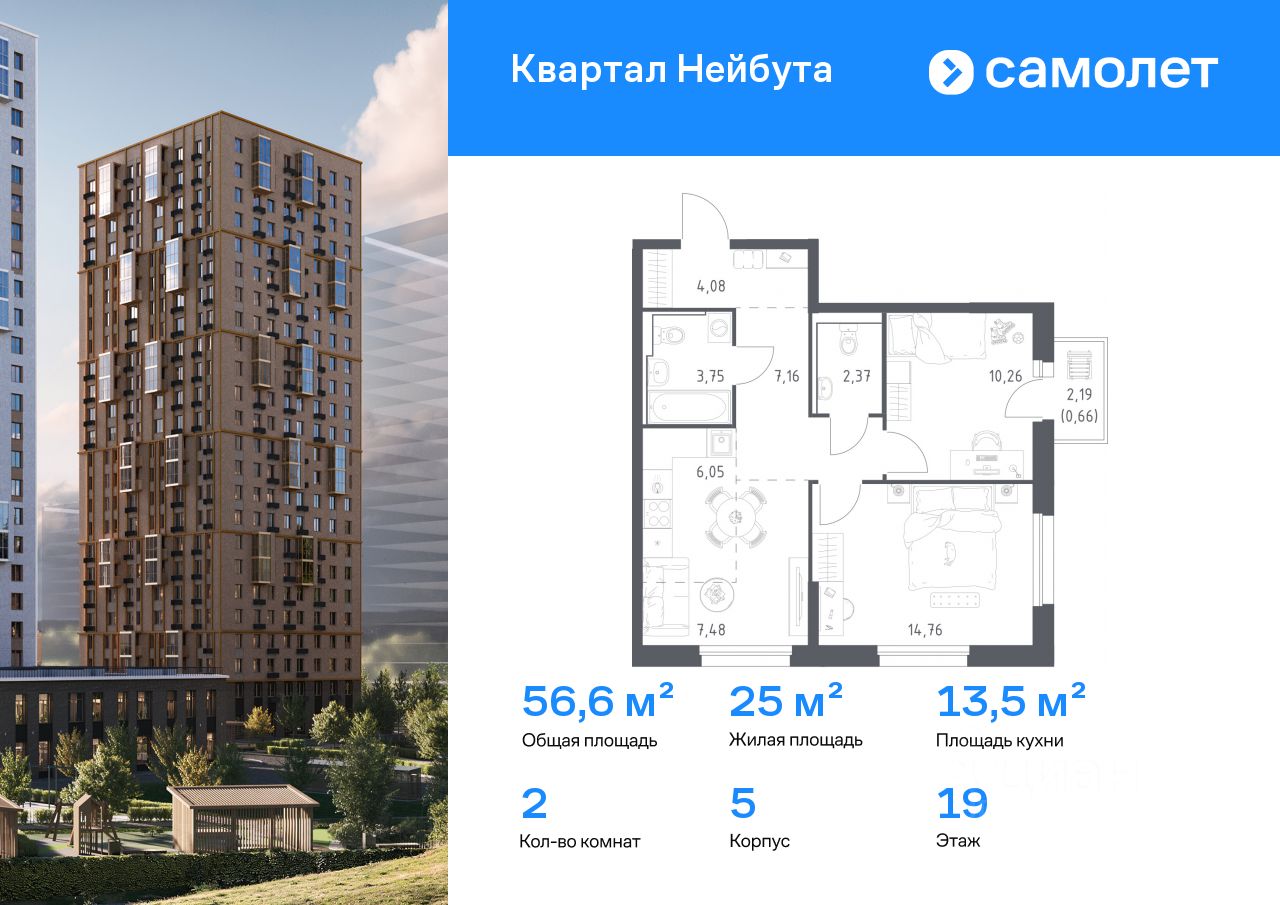 Предлагается 2-комнатная квартира комфорт-класса 56,57 кв.м в корпусе 5 на 19 этаже, в ЖК ''Квартал Нейбута'' Квартира с чистовой отделкой. Доступность дополнительных опций уточняйте у застройщика. Приобрести квартиру возможно по специальным акциям от застройщика, с текущими условиями акций можно ознакомиться в блоке ''Акций''. Цена динамическая и может отличаться, уточняйте актуальность у застройщика. В новом ''Квартале Нейбута'' захочется освободить галерею телефона — чтобы вместить коллекцию по-настоящему захватывающих кадров. В объектив вашей камеры попадут зеленые сопки, бескрайнее небо и другие красоты Приморского края. Квартал находится в одном из районов Владивостока, откуда легко добраться в любую точку города. Дорога до центра города, морского и ж/д вокзалов займет 30 минут на машине или 45 минут на автобусе. Планировать отпуск тоже удобно — международный аэропорт находится в часе езды от дома. Скоро в квартале будет удобный выезд на улицы Нейбута и Фадеева, откуда можно попасть на трассу Патрокл — Седанка — Де-Фриз — Новый. А к старту первой очереди будет готов северный заезд с твердым покрытием. В квартале можно выйти из дома и оказаться в большом парке с экотропами и прогулочными зонами. Выходите на пробежку или на познавательную прогулку с детьми — можно долго рассматривать растения и искать их названия в интернете. Побродите по тропам для терренкура и обязательно побывайте на смотровых площадках — ваша коллекция впечатлений точно пополнится. Вечером отправляйтесь полюбоваться на вантовый мост в свете огней. Вид на него откроется из бухты Золотой Рог, дорога до которой займет 20 минут на авто. Чтобы решать все повседневные дела, даже не обязательно далеко уходить от дома. На первых этажах корпусов откроются салоны красоты, магазины, пункты выдачи и кафе. Забегайте за утренним латте, новой прической или продуктами к обеду. Юным жителям квартала тоже не придется долго шагать по своим важным делам. Рядом с кварталом находятся 3 детских сада, общеобразовательная и школа искусств и развивающий центр ''Пчелкин дом''. А скоро недалеко от проекта появится еще одна школа на 1100 учеников. Ее планируют строить в 2026 году. 26-этажные дома с отделкой золотистых и благородных коричневых оттенков гармонично впишутся в живописный дальневосточный пейзаж. Объем фасадам придают витражные балконы, с которых открываются виды на Уссурийский залив. Закрытые дворы без машин — маленький мир, вдохновленный природой Приморского края. Стены домов украшают дальневосточные лианы, крыши — пышные ковры из трав. Еще мы установим дождевые сады, которые скроют последствия даже самого сильного ливня. Во дворе найдется интересное занятие для всех жителей квартала. Взрослые смогут устраивать тренировки на свежем воздухе в спортивных зонах, дети будут целый день веселиться на игровых площадках. А для четвероногих питомцев мы предусмотрели специальные зоны для выгула. Возвращайтесь домой из отпуска с чемоданом сувениров или самокатом из парка. Мы отказались