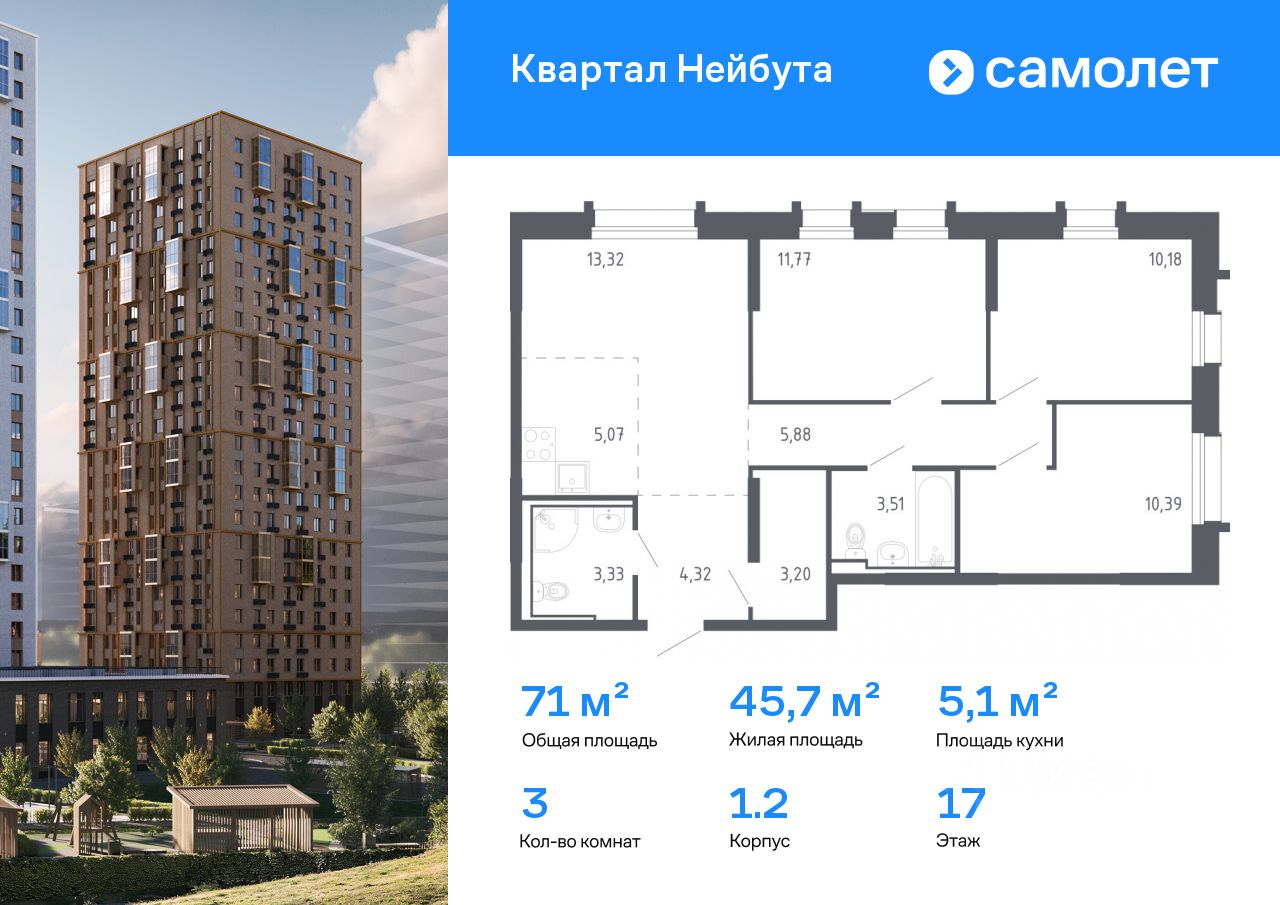 Предлагается 3-комнатная квартира комфорт-класса 70,97 кв.м в корпусе 1.2 на 17 этаже, в ЖК ''Квартал Нейбута'' Квартира с чистовой отделкой. Доступность дополнительных опций уточняйте у застройщика. Приобрести квартиру возможно по специальным акциям от застройщика, с текущими условиями акций можно ознакомиться в блоке ''Акций''. Цена динамическая и может отличаться, уточняйте актуальность у застройщика. В новом ''Квартале Нейбута'' захочется освободить галерею телефона — чтобы вместить коллекцию по-настоящему захватывающих кадров. В объектив вашей камеры попадут зеленые сопки, бескрайнее небо и другие красоты Приморского края. Квартал находится в одном из районов Владивостока, откуда легко добраться в любую точку города. Дорога до центра города, морского и ж/д вокзалов займет 30 минут на машине или 45 минут на автобусе. Планировать отпуск тоже удобно — международный аэропорт находится в часе езды от дома. Скоро в квартале будет удобный выезд на улицы Нейбута и Фадеева, откуда можно попасть на трассу Патрокл — Седанка — Де-Фриз — Новый. А к старту первой очереди будет готов северный заезд с твердым покрытием. В квартале можно выйти из дома и оказаться в большом парке с экотропами и прогулочными зонами. Выходите на пробежку или на познавательную прогулку с детьми — можно долго рассматривать растения и искать их названия в интернете. Побродите по тропам для терренкура и обязательно побывайте на смотровых площадках — ваша коллекция впечатлений точно пополнится. Вечером отправляйтесь полюбоваться на вантовый мост в свете огней. Вид на него откроется из бухты Золотой Рог, дорога до которой займет 20 минут на авто. Чтобы решать все повседневные дела, даже не обязательно далеко уходить от дома. На первых этажах корпусов откроются салоны красоты, магазины, пункты выдачи и кафе. Забегайте за утренним латте, новой прической или продуктами к обеду. Юным жителям квартала тоже не придется долго шагать по своим важным делам. Рядом с кварталом находятся 3 детских сада, общеобразовательная и школа искусств и развивающий центр ''Пчелкин дом''. А скоро недалеко от проекта появится еще одна школа на 1100 учеников. Ее планируют строить в 2026 году. 26-этажные дома с отделкой золотистых и благородных коричневых оттенков гармонично впишутся в живописный дальневосточный пейзаж. Объем фасадам придают витражные балконы, с которых открываются виды на Уссурийский залив. Закрытые дворы без машин — маленький мир, вдохновленный природой Приморского края. Стены домов украшают дальневосточные лианы, крыши — пышные ковры из трав. Еще мы установим дождевые сады, которые скроют последствия даже самого сильного ливня. Во дворе найдется интересное занятие для всех жителей квартала. Взрослые смогут устраивать тренировки на свежем воздухе в спортивных зонах, дети будут целый день веселиться на игровых площадках. А для четвероногих питомцев мы предусмотрели специальные зоны для выгула. Возвращайтесь домой из отпуска с чемоданом сувениров или самокатом из парка. Мы отказалис