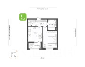 Кухня-гостиная 11,1 кв.м с лоджией для приготовления вкусных блюд, встречи гостей и отдыхаПрихожая 3,7 кв.м с гардеробной 2,2 кв.м удобное место для хранения вещей и организации порядкаВанная 4,8 кв.м с местом под стиральную машинуСпальня 14,1 кв.м для отдыха и сна