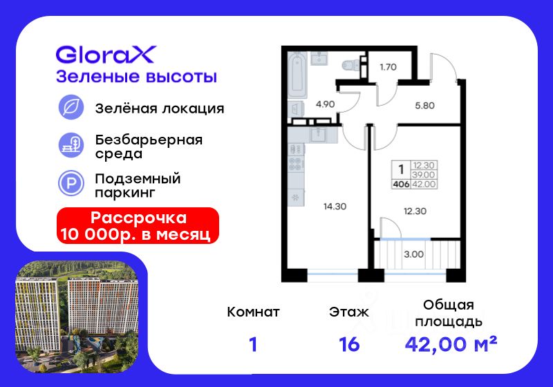 42 м² · Этаж 16 из 25