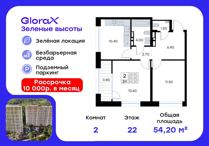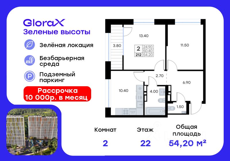 54 м² · Этаж 22 из 25