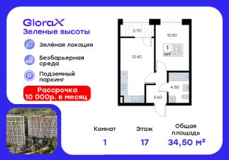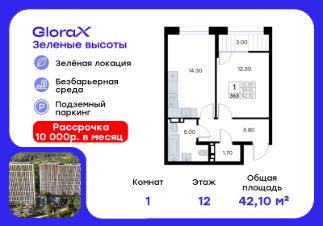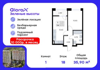Продается 1-комн. квартира на 18-м этаже в жилом квартале GloraX Зелёные высоты — проекте в тихой зелёной локации. Общая площадь квартиры 35,90 кв. м, из которых 10,50 кв. м включая 10,50 кв. м жилого пространства и 13,60 кв. м кухни. Номер квартиры - 174.Преимущества квартиры:компактная евро-2, лоджия.Преимущества проекта:• Идеальное сочетание городской и загородной жизни• Сдаем в 2025 году• Уютный зелёный район с развитой инфраструктурой• Великолепные виды на Вечнозеленый сквер и лесопарк на 150 Га• Видеонаблюдение, IP-домофон, Wi-Fi на территории,• Дизайнерские входные группы• Безбарьерная среда, колясочные, туалеты на 1 этаже, лапомойки• Эксклюзивное благоустройство территории • Подземный паркинг на 235 машино-мест с лифтом на жилые этажи• Индивидуальные кладовые от 3 до 7 кв. м• Черновая отделка для реализации любых дизайнерских идейGloraX Зелёные высоты — современный жилой проект, сочетающий преимущества городской и пригородной жизни. Комплекс тщательно продуман для максимального удобства и обеспечения безопасности жителей. Квартал расположен в зеленом, живописном и активно развивающемся районе Зеленый Угол, вдали от серой массовой застройки. Жители GloraX Зелёные высоты смогут насладждаться прогулками в Вечнозелёном сквере или лесопарке. В непосредственной близости находятся остановки общественного транспорта и автомобильный подъезд со стороны Нейбута. Скоро также появится выездом на трассу Де-Фриз-Седанка, что обеспечит быстрый доступ в любую часть города и пригород.Проект включает 2 корпуса, каждый из которых спроектирован с акцентом на комфорт, безопасность и современный образ жизни.В комплексе предусмотрен подземный паркинг на 235 машиномест с доступом прямо с жилых этажей. Паркинг оборудован современными системами видеонаблюдения, контроля въезда-выезда и пожаротушения. Цокольный этаж здания отведен под индивидуальные кладовые площадью от 3 до 7 квадратных метров, которые можно использовать для хранения сезонных вещей. Доступ к кладовым - на лифте с жилых этажей.Территория жилого квартала благоустроена и включает игровые зоны и спортивные площадки для детей различных возрастных групп, уютные зоны отдыха со скамейками и универсальную воркаут-площадку для активного досуга.В шаговой доступности располагаются все необходимые объекты социальной инфраструктуры.Узнайте больше в отделе продаж — выберите свою квартиру в GloraX Зелёные высоты уже сегодня!