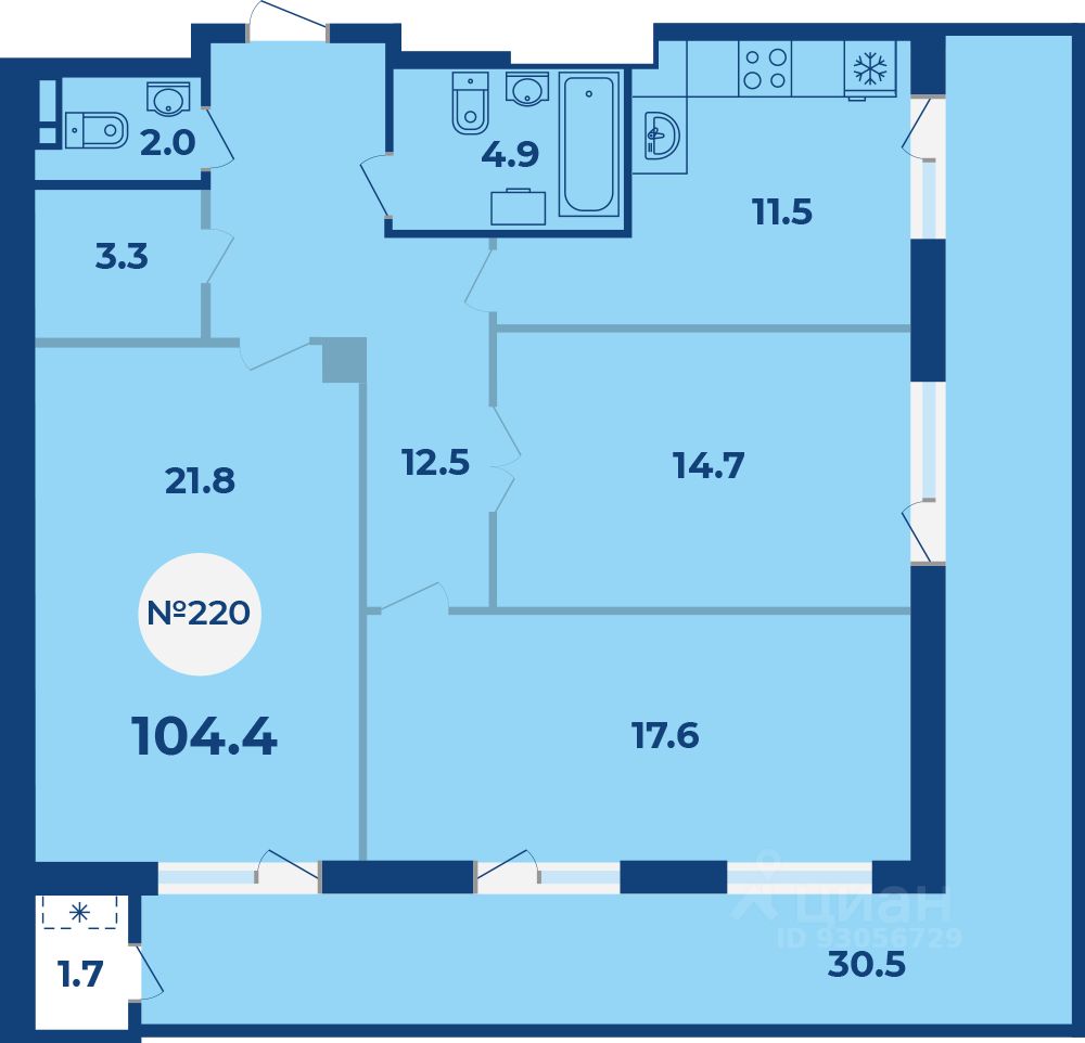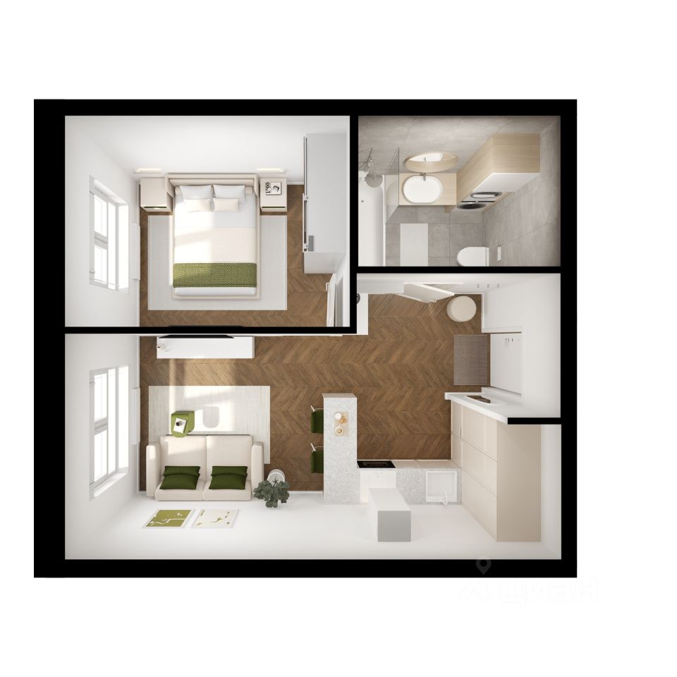 Балкон 4,1 кв.м. с видом на закат для долгих вечеров и уютных посиделок Просторный коридор 5,4 кв.м. с отдельной комнатой под гардероб, чтобы освободить пространство Санузел 4,3 кв.м. с местом под стиральную машину Кухня-гостиная 17,7 кв.м. с выходом на балкон для шумных компаний и тёплых встреч Спальня 12,1 кв.м. с пространством под хранение вещей и местом для рабочей зоны