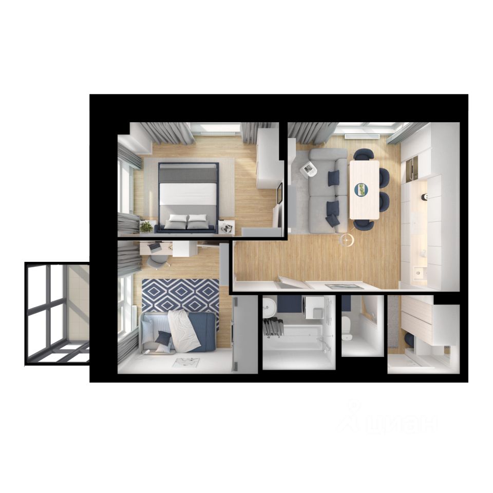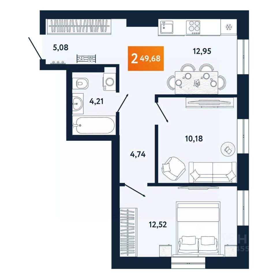 Продаётся 2-комнатная квартира в строящемся доме (Дом 1), срок сдачи: II-кв. 2027, общей площадью 49.49 кв.м., на 12 этаже.