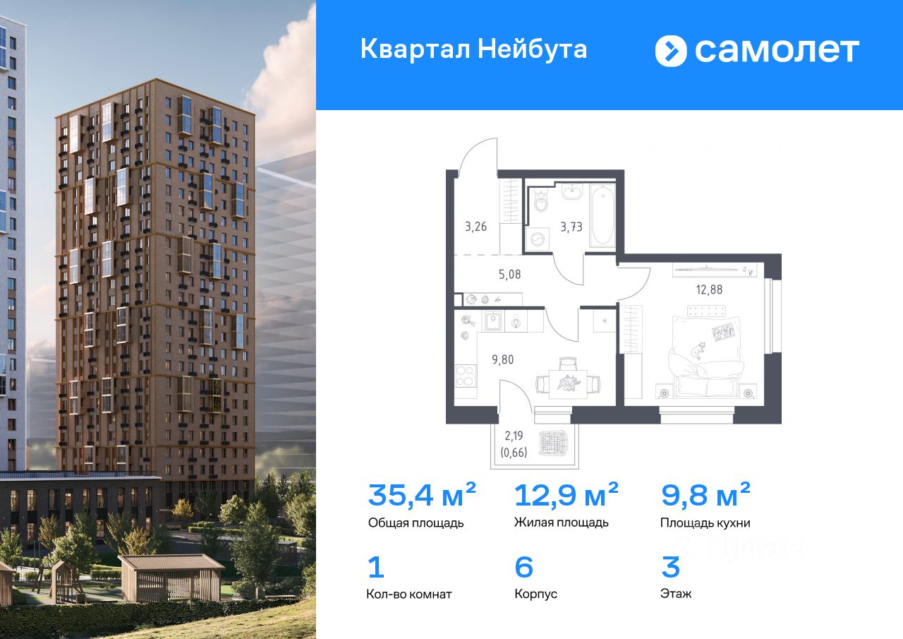 Строим кварталы для жизни с заботой о будущем. Предлагается 1-комнатная квартира комфорт-класса 35,41 кв.м в корпусе 6 на 3 этаже, в ЖК ''Квартал Нейбута'' Квартира с предчистовой отделкой. Доступность дополнительных опций уточняйте у застройщика. Приобрести квартиру возможно по специальным акциям от застройщика, с текущими условиями акций можно ознакомиться в блоке ''Акций''. Цена динамическая и может отличаться, уточняйте актуальность у застройщика. В новом ''Квартале Нейбута'' захочется освободить галерею телефона — чтобы вместить коллекцию по-настоящему захватывающих кадров. В объектив вашей камеры попадут зеленые сопки, бескрайнее небо и другие красоты Приморского края. Квартал находится в одном из районов Владивостока, откуда легко добраться в любую точку города. Дорога до центра города, морского и ж/д вокзалов займет 30 минут на машине или 45 минут на автобусе. Планировать отпуск тоже удобно — международный аэропорт находится в часе езды от дома. Скоро в квартале будет удобный выезд на улицы Нейбута и Фадеева, откуда можно попасть на трассу Патрокл — Седанка — Де-Фриз — Новый. А к старту первой очереди будет готов северный заезд с твердым покрытием. В квартале можно выйти из дома и оказаться в большом парке с экотропами и прогулочными зонами. Выходите на пробежку или на познавательную прогулку с детьми — можно долго рассматривать растения и искать их названия в интернете. Побродите по тропам для терренкура и обязательно побывайте на смотровых площадках — ваша коллекция впечатлений точно пополнится. Вечером отправляйтесь полюбоваться на вантовый мост в свете огней. Вид на него откроется из бухты Золотой Рог, дорога до которой займет 20 минут на авто. Чтобы решать все повседневные дела, даже не обязательно далеко уходить от дома. На первых этажах корпусов откроются салоны красоты, магазины, пункты выдачи и кафе. Забегайте за утренним латте, новой прической или продуктами к обеду. Юным жителям квартала тоже не придется долго шагать по своим важным делам. Рядом с кварталом находятся 3 детских сада, общеобразовательная и школа искусств и развивающий центр ''Пчелкин дом''. А скоро недалеко от проекта появится еще одна школа на 1100 учеников. Ее планируют строить в 2026 году. 26-этажные дома с отделкой золотистых и благородных коричневых оттенков гармонично впишутся в живописный дальневосточный пейзаж. Объем фасадам придают витражные балконы, с которых открываются виды на Уссурийский залив. Закрытые дворы без машин — маленький мир, вдохновленный природой Приморского края. Стены домов украшают дальневосточные лианы, крыши — пышные ковры из трав. Еще мы установим дождевые сады, которые скроют последствия даже самого сильного ливня. Во дворе найдется интересное занятие для всех жителей квартала. Взрослые смогут устраивать тренировки на свежем воздухе в спортивных зонах, дети будут целый день веселиться на игровых площадках. А для четвероногих питомцев мы предусмотрели специальные зоны для выгула. Возвращайтесь домой из отпуска с чемодано