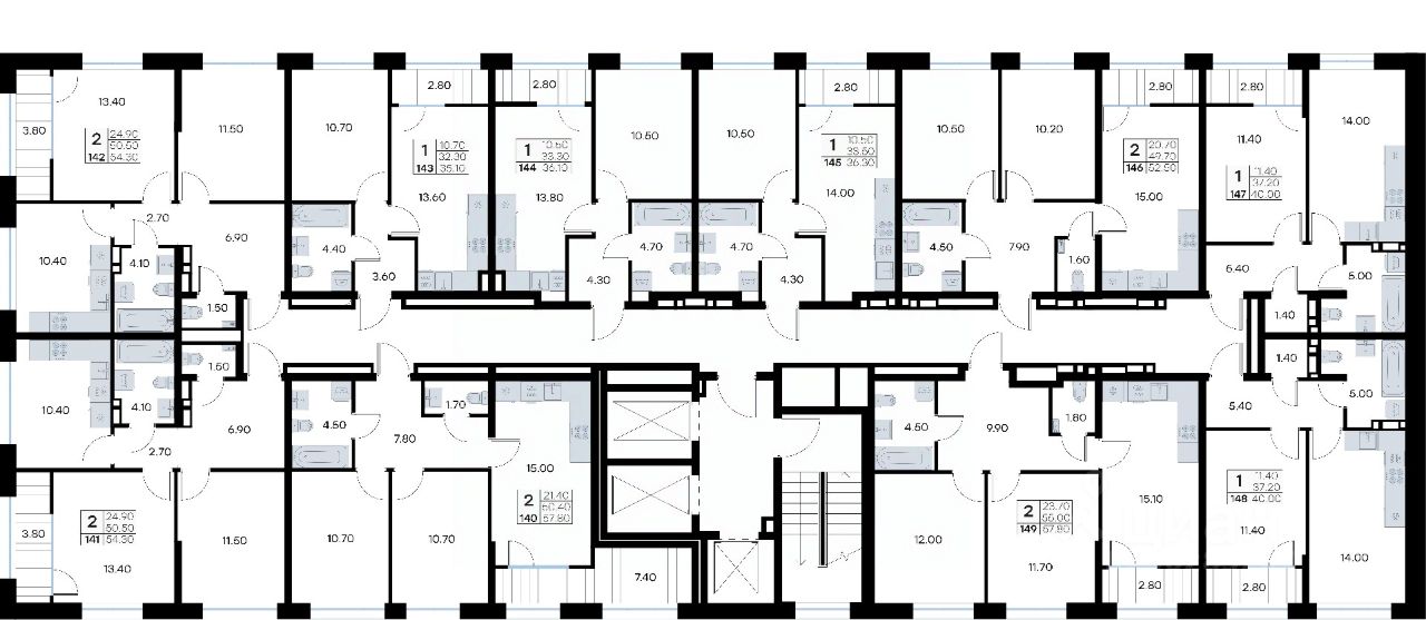 Продаётся 2-комнатная квартира в строящемся доме (Дом 1), срок сдачи: II-кв. 2027, общей площадью 49.49 кв.м., на 14 этаже.