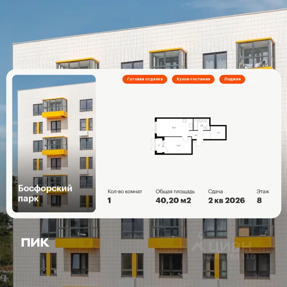 Продаётся 1-комн. квартира площадью 40,2 кв.м на 8 этаже 9 этажного дома (Корпус 4, Секция 1) проекта ПИК Босфорский парк. Светлый просторный подъезд на уровне земли, функциональная планировка, большие окна, c отделкой. Жилой квартал ''Босфорский парк'' расположен на юге Владивостока, в районе живописной бухты Патрокл. Из окон домов будет открываться прекрасный вид на залив и лес. Дорога до центра Владивостока на автомобиле займёт 20 минут. В ''Босфорском парке'' появится 20 жилых корпусов с магазинами, кафе и полезными сервисами на первых этажах. На территории проекта предусмотрены два многоуровневых надземных паркинга. В квартале будет много мест для отдыха и активных игр, три вида парков и даже родник, который будет перетекать в ручей с порогами и препятствиями. На территории парков появятся амфитеатры и террасы. Здесь жители смогут отдыхать, гулять, общаться, учиться или работать на свежем воздухе. На естественных склонах будут обустроены игровые зоны для детей - с горками, сетками, канатами и скалолазными зацепами. Всё это - новый формат благоустройства ''Многоуровневый ландшафт'', который разработан специально для регионов с перепадами высот. Ещё на этапе проектирования архитекторы учли все особенности рельефа, чтобы создать органичное пространство. Артикул 938429 (Застройщик ООО ''СПЕЦИАЛИЗИРОВАННЫЙ ЗАСТРОЙЩИК ПИК-ПРИМОРЬЕ'')