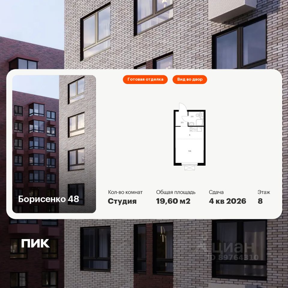 Продаётся квартира-студия площадью 19,6 кв.м на 8 этаже 17 этажного дома (Корпус 1, Секция 1) проекта ПИК Борисенко 48. Светлый просторный подъезд на уровне земли, функциональная планировка, большие окна, c отделкой. ''Борисенко 48'' - небольшой квартал в Первомайском районе, в 15 минутах пути на автомобиле от центра Владивостока. С верхних этажей откроется живописный вид на город и сопки. В проекте всего четыре дома и подземный паркинг, в который можно будет спуститься на лифте. Высота домов от 17 до 30 этажей - благодаря переменной этажности солнце будет лучше освещать двор и квартиры. На первых этажах откроются пекарни, кафе, магазины и другие сервисы - это удобно, когда внезапно закончится хлеб или захочется побаловать себя горячим кофе. Из каждого дома будет выход в уютный двор-парк - это закрытая территория для отдыха, где растут цветы и деревья, оборудованы детские и спортивные площадки. Рядом с ''Борисенко 48'' появится также детский сад для 150 малышей. В пешей доступности есть всё необходимое для комфортной жизни: школы, детские сады, поликлиника и магазины. До крупных торговых центров ''Калина Молл'' и ''Луговая'', а также супермаркета ''Реми'' - всего 5 минут на машине. А до озера на Сафонова, которое отлично подходит для прогулок и отдыха, можно дойти пешком за 9 минут. Живописная Леопардовая набережная - в 10 минутах на автомобиле. Из квартала можно будет выехать как на улицу Борисенко, так и на улицу Сафонова. Артикул 918074 (Застройщик ООО ''СЗ ''Юстина'')