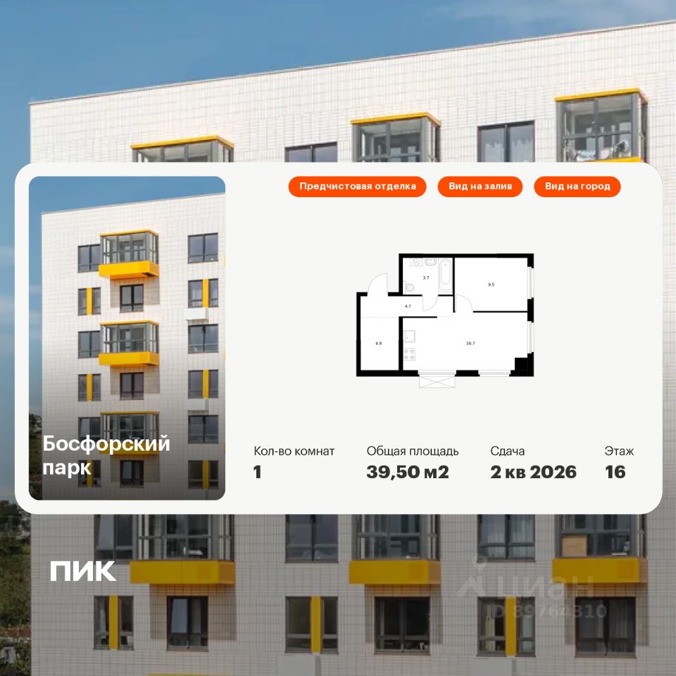 Продаётся 1-комн. квартира площадью 39,5 кв.м на 16 этаже 17 этажного дома (Корпус 5, Секция 1) проекта ПИК Босфорский парк. Светлый просторный подъезд на уровне земли, функциональная планировка, большие окна, предчистовая отделка. Жилой квартал ''Босфорский парк'' расположен на юге Владивостока, в районе живописной бухты Патрокл. Из окон домов будет открываться прекрасный вид на залив и лес. Дорога до центра Владивостока на автомобиле займёт 20 минут. В ''Босфорском парке'' появится 20 жилых корпусов с магазинами, кафе и полезными сервисами на первых этажах. На территории проекта предусмотрены два многоуровневых надземных паркинга. В квартале будет много мест для отдыха и активных игр, три вида парков и даже родник, который будет перетекать в ручей с порогами и препятствиями. На территории парков появятся амфитеатры и террасы. Здесь жители смогут отдыхать, гулять, общаться, учиться или работать на свежем воздухе. На естественных склонах будут обустроены игровые зоны для детей - с горками, сетками, канатами и скалолазными зацепами. Всё это - новый формат благоустройства ''Многоуровневый ландшафт'', который разработан специально для регионов с перепадами высот. Ещё на этапе проектирования архитекторы учли все особенности рельефа, чтобы создать органичное пространство. Артикул 937598 (Застройщик ООО ''СПЕЦИАЛИЗИРОВАННЫЙ ЗАСТРОЙЩИК ПИК-ПРИМОРЬЕ'')