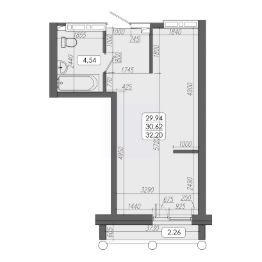Продаётся 1-комнатная квартира в строящемся доме (Дом 1), срок сдачи: II-кв. 2027, общей площадью 32.46 кв.м., на 2 этаже.