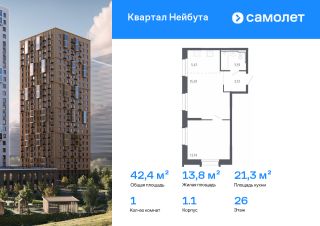 Предлагается 1-комнатная квартира комфорт-класса 42,36 кв.м в корпусе 1.1 на 26 этаже, в ЖК ''Квартал Нейбута''Квартира с чистовой отделкой. Доступность дополнительных опций уточняйте у застройщика.Приобрести квартиру возможно по специальным акциям от застройщика, с текущими условиями акций можно ознакомиться в блоке ''Акций''.Цена динамическая и может отличаться, уточняйте актуальность у застройщика.В новом ''Квартале Нейбута'' захочется освободить галерею телефона — чтобы вместить коллекцию по-настоящему захватывающих кадров. В объектив вашей камеры попадут зеленые сопки, бескрайнее небо и другие красоты Приморского края. Квартал находится в одном из районов Владивостока, откуда легко добраться в любую точку города. Дорога до центра города, морского и ж/д вокзалов займет 30 минут на машине или 45 минут на автобусе. Планировать отпуск тоже удобно — международный аэропорт находится в часе езды от дома. Скоро в квартале будет удобный выезд на улицы Нейбута и Фадеева, откуда можно попасть на трассу Патрокл — Седанка — Де-Фриз — Новый. А к старту первой очереди будет готов северный заезд с твердым покрытием. В квартале можно выйти из дома и оказаться в большом парке с экотропами и прогулочными зонами. Выходите на пробежку или на познавательную прогулку с детьми — можно долго рассматривать растения и искать их названия в интернете. Побродите по тропам для терренкура и обязательно побывайте на смотровых площадках — ваша коллекция впечатлений точно пополнится. Вечером отправляйтесь полюбоваться на вантовый мост в свете огней. Вид на него откроется из бухты Золотой Рог, дорога до которой займет 20 минут на авто. Чтобы решать все повседневные дела, даже не обязательно далеко уходить от дома. На первых этажах корпусов откроются салоны красоты, магазины, пункты выдачи и кафе. Забегайте за утренним латте, новой прической или продуктами к обеду. Юным жителям квартала тоже не придется долго шагать по своим важным делам. Рядом с кварталом находятся 3 детских сада, общеобразовательная и школа искусств и развивающий центр ''Пчелкин дом''. А скоро недалеко от проекта появится еще одна школа на 1100 учеников. Ее планируют строить в 2026 году. 26-этажные дома с отделкой золотистых и благородных коричневых оттенков гармонично впишутся в живописный дальневосточный пейзаж. Объем фасадам придают витражные балконы, с которых открываются виды на Уссурийский залив. Закрытые дворы без машин — маленький мир, вдохновленный природой Приморского края. Стены домов украшают дальневосточные лианы, крыши — пышные ковры из трав. Еще мы установим дождевые сады, которые скроют последствия даже самого сильного ливня. Во дворе найдется интересное занятие для всех жителей квартала. Взрослые смогут устраивать тренировки на свежем воздухе в спортивных зонах, дети будут целый день веселиться на игровых площадках. А для четвероногих питомцев мы предусмотрели специальные зоны для выгула. Возвращайтесь домой из отпуска с чемоданом сувениров или самокатом из парка. Мы отказалис