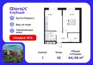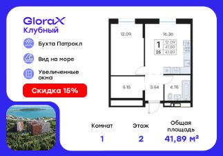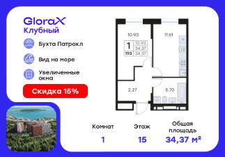 Продается 1-комн. квартира на 14-м этаже в квартале GloraX Клубный. GloraX Клубный - уникальный видовой проект с выделяющейся архитектурой в развитом районе Владивостока. Общая площадь лота составляет 38,26 кв. м, из которых 14,36 кв. м отведено под жилую и 10,90 кв. м под кухонную зону. Номер квартиры - 388.Преимущества квартиры:однокомнатная квартира, высокий этаж, гардеробная.Преимущества проекта:• Квартиры с панорамными видами на бухту Патрокл, маяк Басаргина и остров Русский• Планировочные решения под любой жизненный сценарий от 23 до 67 м²• Гардеробные комнаты, увеличенные панорамные окна, просторные кухни-гостиные• Эксклюзивное благоустройство: продуманное зонирование, игровые и спортивные площадки, площадка для стритбола, амфитеатр• Премиальный дизайн входных групп с лаунж-зоной• Безбарьерная среда, закрытая территория, видеонаблюдение• Лапомойки, колясочные и туалеты на первом этаже• Двухуровневый подземный паркинг на 350 машино-мест с лифтом на жилые этажи• Келлеры на цокольном этаже для хранения сезонных вещей с доступом на лифте• Современный ландшафтный дизайн комплекса от DEREVOPARKGloraX Клубный заповедник в черте мегаполиса. Комплекс тщательно продуман для максимального удобства и обеспечения безопасности его жителей. Квартал расположен в одном из самых современных развивающихся районов города: совсем рядом раскинулась живописная бухта Патрокл, где можно прогуляться по облагороженной пешеходной набережной, заглянуть на пляж или в школу серфинга. Комплекс имеет прекрасную транспортную доступность: рядом проходит объездная трасса СеданкаПатрокл, а до центар можно доехать всего за 15 минут.Проект включает 3 монолитных корпуса, каждый из которых спроектирован с акцентом на комфорт, безопасность и современный образ жизни рядом с уникальной природой. Общий двор создает приватную территорию для житей комплекса.В комплексе предусмотрен двухуровневый подземный паркинг на 350 машино-мест с доступом прямо с жилых этажей. Паркинг оборудован современными системами видеонаблюдения, контроля въезда-выезда и пожаротушения. На цокольном этаже размещаются келлеры для хранения сезонных и габаритных вещей. Доступ к кладовым на лифте с жилых этажей. Современный ландшафтный дизайн жилого комплекса GloraX Клубный создан ведущей российской студией DEREVOPARK. Во дворе для детей всех возрастов предусмотрены различные игровые площадки с лазалками, батутами, качелями и песочницей. В центре расположен специальный ''зеленый остров'', где взрослые могут отдохнуть на качелях и гамаках в тени больших деревьев. Для любителей спорта предусмотрены две специальные спортивные площадки для настольного тенниса и стритбола — для зрителей тоже найдется место! А еще на территории комплекса будет дорожка для роллеров и любителей покататься на велосипеде, самокате или скейте.В шаговой доступности располагаются все необходимые объекты социальной и коммерческой инфраструктуры.Цена у