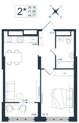 Идеальная квартира для молодой семьиКухня-столовая 13,7 кв.м для семейных завтраков и ужиновПросторная родительская спальня 14,7 кв.м с выходом на лоджию, где можно наслаждаться свежим воздухомУютная детская комната 11,3 кв.м для занятий учебой и отдыхаПрихожая 4,8 кв.м с местом под шкаф-купеВанная комната 4 кв.м в удобном расположении для всех членов семьи