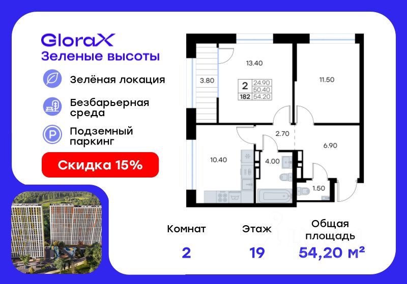 Продается 2-комн. квартира на 19-м этаже в жилом квартале GloraX Зелёные высоты — проекте в тихой зелёной локации. Общая площадь квартиры 54,20 кв. м, из которых 24,90 кв. м включая 24,90 кв. м жилого пространства и 10,40 кв. м кухни. Номер квартиры - 182. Преимущества квартиры: угловая 2 к.кв., лоджия. Преимущества проекта: • Идеальное сочетание городской и загородной жизни • Сдаем в 2025 году • Уютный зелёный район с развитой инфраструктурой • Великолепные виды на Вечнозеленый сквер и лесопарк на 150 Га • Видеонаблюдение, IP-домофон, Wi-Fi на территории, • Дизайнерские входные группы • Безбарьерная среда, колясочные, туалеты на 1 этаже, лапомойки • Эксклюзивное благоустройство территории • Подземный паркинг на 235 машино-мест с лифтом на жилые этажи • Индивидуальные кладовые от 3 до 7 кв. м • Черновая отделка для реализации любых дизайнерских идей GloraX Зелёные высоты — современный жилой проект, сочетающий преимущества городской и пригородной жизни. Комплекс тщательно продуман для максимального удобства и обеспечения безопасности жителей. Квартал расположен в зеленом, живописном и активно развивающемся районе Зеленый Угол, вдали от серой массовой застройки. Жители GloraX Зелёные высоты смогут насладждаться прогулками в Вечнозелёном сквере или лесопарке. В непосредственной близости находятся остановки общественного транспорта и автомобильный подъезд со стороны Нейбута. Скоро также появится выездом на трассу Де-Фриз-Седанка, что обеспечит быстрый доступ в любую часть города и пригород. Проект включает 2 корпуса, каждый из которых спроектирован с акцентом на комфорт, безопасность и современный образ жизни. В комплексе предусмотрен подземный паркинг на 235 машиномест с доступом прямо с жилых этажей. Паркинг оборудован современными системами видеонаблюдения, контроля въезда-выезда и пожаротушения. Цокольный этаж здания отведен под индивидуальные кладовые площадью от 3 до 7 квадратных метров, которые можно использовать для хранения сезонных вещей. Доступ к кладовым - на лифте с жилых этажей. Территория жилого квартала благоустроена и включает игровые зоны и спортивные площадки для детей различных возрастных групп, уютные зоны отдыха со скамейками и универсальную воркаут-площадку для активного досуга. В шаговой доступности располагаются все необходимые объекты социальной инфраструктуры. Узнайте больше в отделе продаж — выберите свою квартиру в GloraX Зелёные высоты уже сегодня!