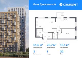 Предлагается 2-комнатная квартира комфорт-класса 61,51 кв.м в корпусе 1 на 16 этаже, в ЖК ''Маяк Днепровской''Квартира с предчистовой отделкой. Доступность дополнительных опций уточняйте у застройщика.Приобрести квартиру возможно по специальным акциям от застройщика, с текущими условиями акций можно ознакомиться в блоке ''Акций''.Цена динамическая и может отличаться, уточняйте актуальность у застройщика.''Маяк Днепровской'' — это маленький город с домами высотой от 17 до 30 этажей. Мы строим современные здания со стилобатами и террасами, которые отвечают архитектурным трендам, но при этом гармонично вписываются в окружающие пейзажи. Переменная этажность домов повторяет уникальный дальневосточный ландшафт, а оттенки фасадов перекликаются с красками природы. Здесь вы будете любоваться живописными закатами и встречать рассветы с панорамного балкона.