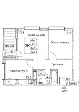 54 м2