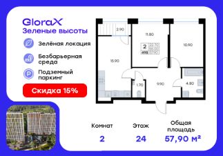 Продается 2-комн. квартира на 6-м этаже в жилом квартале GloraX Зелёные высоты — проекте в тихой зелёной локации. Общая площадь квартиры 53,20 кв. м, из которых 24,50 кв. м включая 24,50 кв. м жилого пространства и 10,20 кв. м кухни. Номер квартиры - 560.Преимущества квартиры:угловая 2 к.кв., лоджия.Преимущества проекта:• Идеальное сочетание городской и загородной жизни• Сдаем в 2025 году• Уютный зелёный район с развитой инфраструктурой• Великолепные виды на Вечнозеленый сквер и лесопарк на 150 Га• Видеонаблюдение, IP-домофон, Wi-Fi на территории,• Дизайнерские входные группы• Безбарьерная среда, колясочные, туалеты на 1 этаже, лапомойки• Эксклюзивное благоустройство территории • Подземный паркинг на 235 машино-мест с лифтом на жилые этажи• Индивидуальные кладовые от 3 до 7 кв. м• Черновая отделка для реализации любых дизайнерских идейGloraX Зелёные высоты — современный жилой проект, сочетающий преимущества городской и пригородной жизни. Комплекс тщательно продуман для максимального удобства и обеспечения безопасности жителей. Квартал расположен в зеленом, живописном и активно развивающемся районе Зеленый Угол, вдали от серой массовой застройки. Жители GloraX Зелёные высоты смогут насладждаться прогулками в Вечнозелёном сквере или лесопарке. В непосредственной близости находятся остановки общественного транспорта и автомобильный подъезд со стороны Нейбута. Скоро также появится выездом на трассу Де-Фриз-Седанка, что обеспечит быстрый доступ в любую часть города и пригород.Проект включает 2 корпуса, каждый из которых спроектирован с акцентом на комфорт, безопасность и современный образ жизни.В комплексе предусмотрен подземный паркинг на 235 машиномест с доступом прямо с жилых этажей. Паркинг оборудован современными системами видеонаблюдения, контроля въезда-выезда и пожаротушения. Цокольный этаж здания отведен под индивидуальные кладовые площадью от 3 до 7 квадратных метров, которые можно использовать для хранения сезонных вещей. Доступ к кладовым - на лифте с жилых этажей.Территория жилого квартала благоустроена и включает игровые зоны и спортивные площадки для детей различных возрастных групп, уютные зоны отдыха со скамейками и универсальную воркаут-площадку для активного досуга.В шаговой доступности располагаются все необходимые объекты социальной инфраструктуры.Узнайте больше в отделе продаж — выберите свою квартиру в GloraX Зелёные высоты уже сегодня!