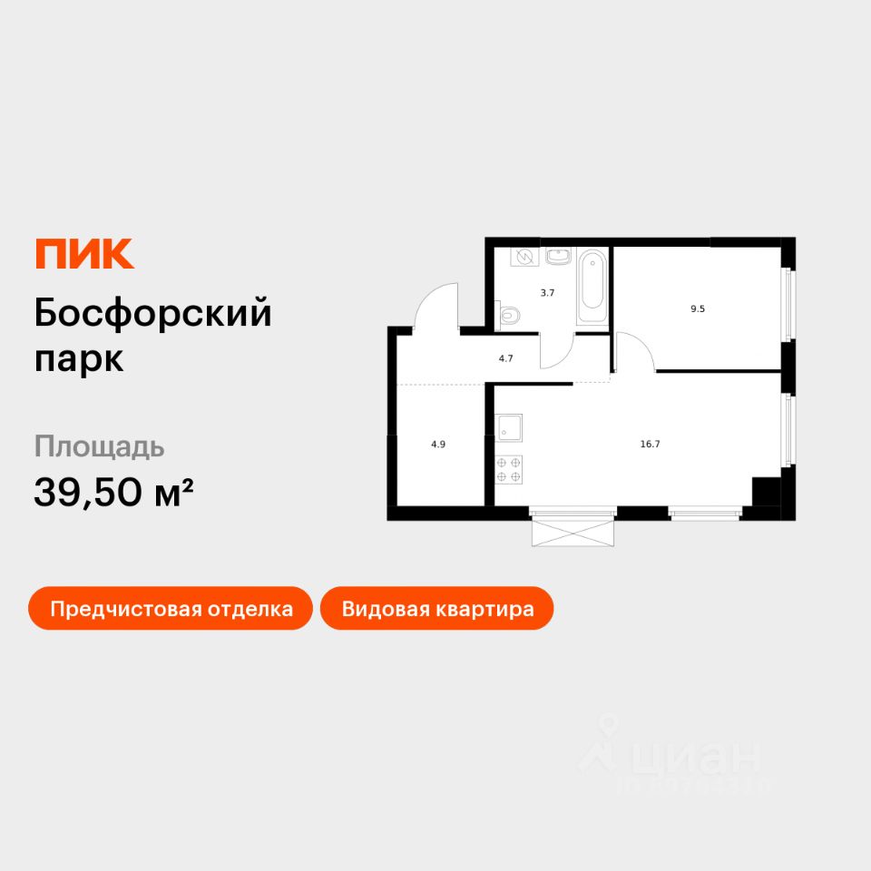 Продаётся 1-комн. квартира площадью 39,5 кв.м на 14 этаже 17 этажного дома (Корпус 5, Секция 1) проекта ПИК Босфорский парк. Светлый просторный подъезд на уровне земли, функциональная планировка, большие окна, предчистовая отделка. Жилой квартал ''Босфорский парк'' расположен на юге Владивостока, в районе живописной бухты Патрокл. Из окон домов будет открываться прекрасный вид на залив и лес. Дорога до центра Владивостока на автомобиле займёт 20 минут. В ''Босфорском парке'' появится 20 жилых корпусов с магазинами, кафе и полезными сервисами на первых этажах. На территории проекта предусмотрены два многоуровневых надземных паркинга. В квартале будет много мест для отдыха и активных игр, три вида парков и даже родник, который будет перетекать в ручей с порогами и препятствиями. На территории парков появятся амфитеатры и террасы. Здесь жители смогут отдыхать, гулять, общаться, учиться или работать на свежем воздухе. На естественных склонах будут обустроены игровые зоны для детей - с горками, сетками, канатами и скалолазными зацепами. Всё это - новый формат благоустройства ''Многоуровневый ландшафт'', который разработан специально для регионов с перепадами высот. Ещё на этапе проектирования архитекторы учли все особенности рельефа, чтобы создать органичное пространство. Артикул 937579 (Застройщик ООО ''СПЕЦИАЛИЗИРОВАННЫЙ ЗАСТРОЙЩИК ПИК-ПРИМОРЬЕ'')
