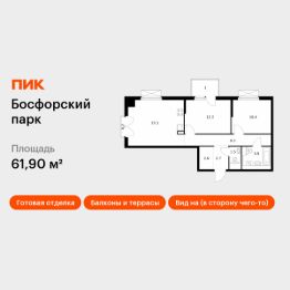 Продаётся 2-комн. квартира площадью 61,9 кв.м на 5 этаже 9 этажного дома (Корпус 4, Секция 1) проекта ПИК Босфорский парк. Светлый просторный подъезд на уровне земли, функциональная планировка, большие окна, c отделкой. Жилой квартал ''Босфорский парк'' расположен на юге Владивостока, в районе живописной бухты Патрокл. Из окон домов будет открываться прекрасный вид на залив и лес. Дорога до центра Владивостока на автомобиле займёт 20 минут. В ''Босфорском парке'' появится 20 жилых корпусов с магазинами, кафе и полезными сервисами на первых этажах. На территории проекта предусмотрены два многоуровневых надземных паркинга. В квартале будет много мест для отдыха и активных игр, три вида парков и даже родник, который будет перетекать в ручей с порогами и препятствиями. На территории парков появятся амфитеатры и террасы. Здесь жители смогут отдыхать, гулять, общаться, учиться или работать на свежем воздухе. На естественных склонах будут обустроены игровые зоны для детей - с горками, сетками, канатами и скалолазными зацепами. Всё это - новый формат благоустройства ''Многоуровневый ландшафт'', который разработан специально для регионов с перепадами высот. Ещё на этапе проектирования архитекторы учли все особенности рельефа, чтобы создать органичное пространство. Артикул 938383 (Застройщик ООО ''СПЕЦИАЛИЗИРОВАННЫЙ ЗАСТРОЙЩИК ПИК-ПРИМОРЬЕ'')