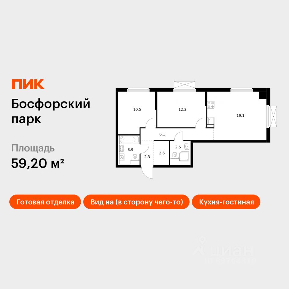 Продаётся 2-комн. квартира площадью 59,2 кв.м на 6 этаже 9 этажного дома (Корпус 4, Секция 1) проекта ПИК Босфорский парк. Светлый просторный подъезд на уровне земли, функциональная планировка, большие окна, c отделкой. Жилой квартал ''Босфорский парк'' расположен на юге Владивостока, в районе живописной бухты Патрокл. Из окон домов будет открываться прекрасный вид на залив и лес. Дорога до центра Владивостока на автомобиле займёт 20 минут. В ''Босфорском парке'' появится 20 жилых корпусов с магазинами, кафе и полезными сервисами на первых этажах. На территории проекта предусмотрены два многоуровневых надземных паркинга. В квартале будет много мест для отдыха и активных игр, три вида парков и даже родник, который будет перетекать в ручей с порогами и препятствиями. На территории парков появятся амфитеатры и террасы. Здесь жители смогут отдыхать, гулять, общаться, учиться или работать на свежем воздухе. На естественных склонах будут обустроены игровые зоны для детей - с горками, сетками, канатами и скалолазными зацепами. Всё это - новый формат благоустройства ''Многоуровневый ландшафт'', который разработан специально для регионов с перепадами высот. Ещё на этапе проектирования архитекторы учли все особенности рельефа, чтобы создать органичное пространство. Артикул 938396 (Застройщик ООО ''СПЕЦИАЛИЗИРОВАННЫЙ ЗАСТРОЙЩИК ПИК-ПРИМОРЬЕ'')