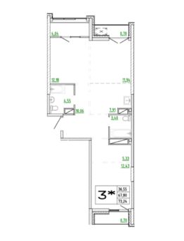 Продаётся 3-комнатная квартира в строящемся доме (Дом 1), срок сдачи: III-кв. 2027, общей площадью 75.26 кв.м., на 4 этаже. Новый жилой комплекс ''Архитектор'' от группы компаний ''Девелопмент-Юг'' расположен по адресу: г. Владивосток, по ул. Бежецкая.