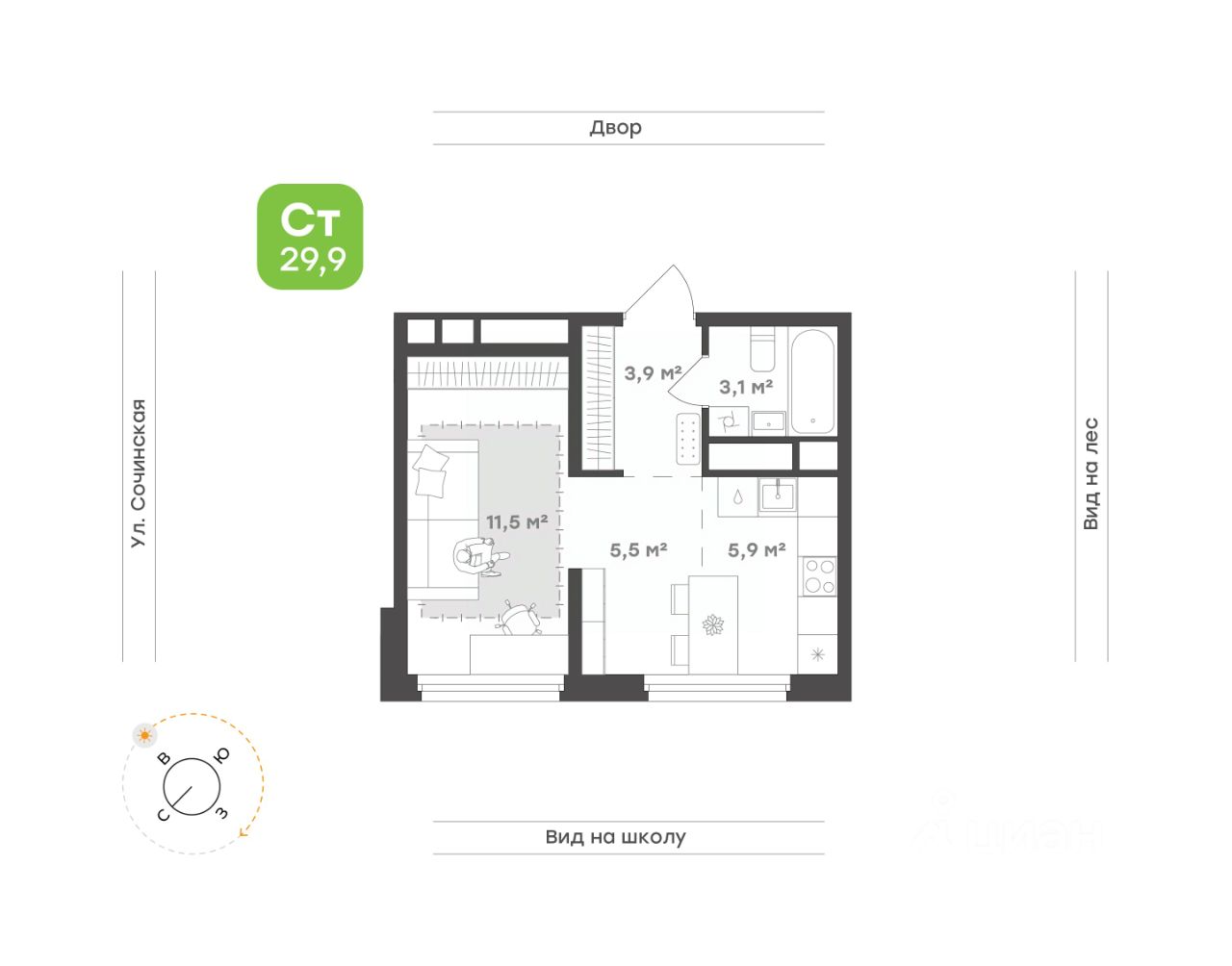 Компактное и стильное пространство для уверенного старта самостоятельной жизни Функциональная кухня оптимизирована под комфортное приготовление ваших кулинарных шедевров, а светлая гостиная предоставляет все возможности для создания уютной зоны отдыха и рабочего уголка Визуальное разделение этих зон осуществляется за счет открытого пространства, выполняющего функцию коридора, что придаёт квартире дополнительную изысканность и практичность Просторная прихожая с местом для хранения вещей помогает поддерживать порядок, а санузел с местом под стиральную машину создаёт все условия для комфортной жизни