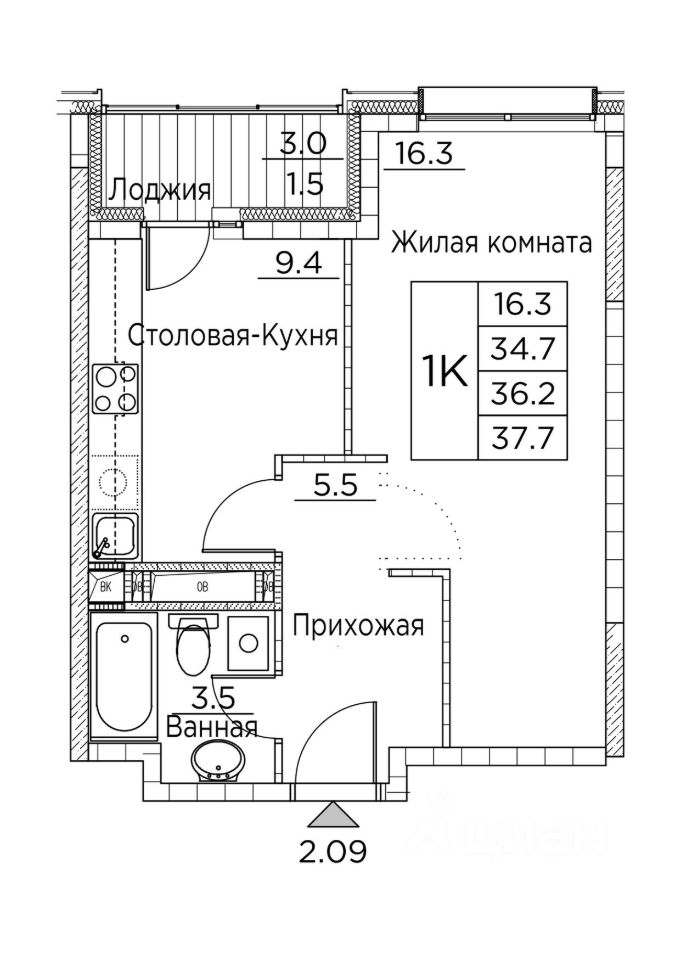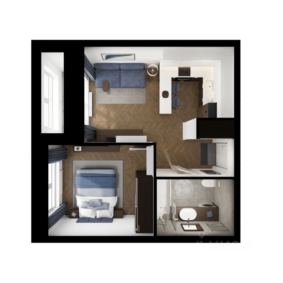 Квартира, которая легко адаптируется под ваш ритм жизни Кухня-гостиная с выходом на лоджию — сердце квартиры, наполненное светом и уютом. Здесь удобно готовить, принимать гостей или отдыхать после долгого дня Спальня — место для отдыха и восстановления. Пространство продумано так, чтобы здесь было комфортно и уютно, а выделенная зона под шкаф поможет организовать хранение без перегруженности интерьера Санузел — стильный и функциональный, с местом для всей необходимой сантехники Прихожая встречает продуманным местом для хранения. Всё под рукой, но ничего лишнего — здесь легко поддерживать порядок и уют