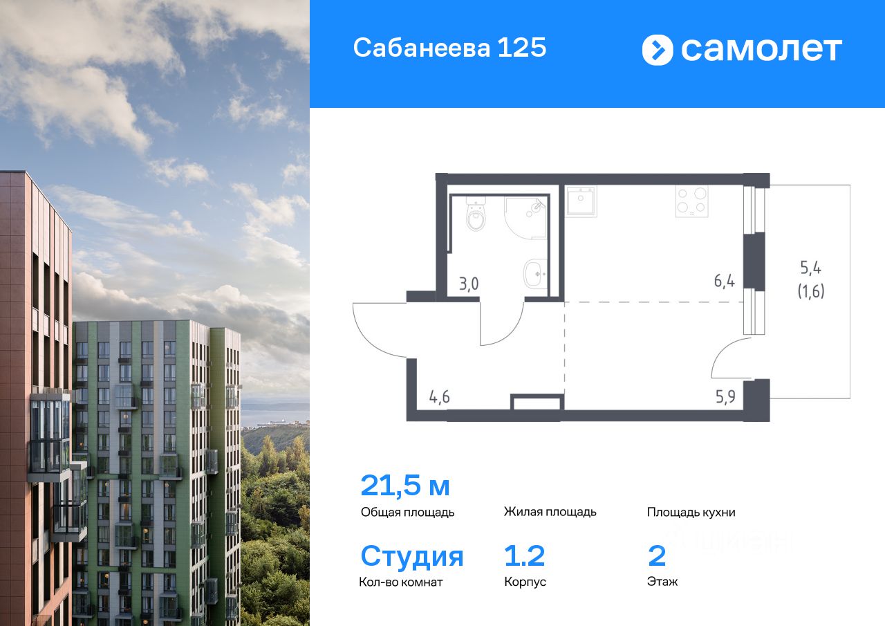 Предлагается квартира студия комфорт-класса 21,5 кв.м в корпусе 1.2 на 2 этаже, в ЖК ''Сабанеева 125'' Квартира без отделки. Доступность опции ''отделка'' и возможность комплектации мебелью и декором уточняйте у застройщика. Приобрести квартиру возможно по специальным акциям от застройщика, с текущими условиями акций можно ознакомиться в блоке ''Акций''. Цена динамическая и может отличаться, уточняйте актуальность у застройщика. В жилом комплексе ''Сабанеева 125'' вы ежедневно будете наслаждаться видами сопок. Холмистый рельеф защищает территорию от ветра. Комплекс расположен в Первореченском районе Владивостока, всего в 20 минутах на машине до центра города. На первых этажах откроются супермаркеты, кафе и пекарни. Для малышей — детский сад в 2 минутах пешком и школа в 10 минутах. За 6 минут можно доехать до Нагорного парка, а за 15 минут — до набережной Цесаревича с панорамой Золотого моста. Комплекс состоит из 3 монолитных домов высотой 25 этажей с фасадами, дизайн которых вдохновлен птицами Дальнего Востока. Дворы оформлены как сад с дальневосточной флорой, есть смотровые площадки, скалодром, перголы и игровые зоны для детей. Подземный паркинг — трехуровневый. В сквозные подъезды без ступеней и с помещением для колясок удобно заходить. В жилом комплексе ''Сабанеева 125'' есть квартиры с индивидуальными зелеными террасами, увеличенными окнами и панорамными балконами для чаепитий с видом на сопки и залив.