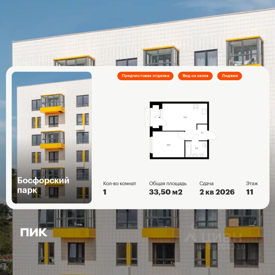 Продаётся 1-комн. квартира площадью 33,5 кв.м на 11 этаже 17 этажного дома (Корпус 5, Секция 1) проекта ПИК Босфорский парк. Светлый просторный подъезд на уровне земли, функциональная планировка, большие окна, предчистовая отделка. Жилой квартал ''Босфорский парк'' расположен на юге Владивостока, в районе живописной бухты Патрокл. Из окон домов будет открываться прекрасный вид на залив и лес. Дорога до центра Владивостока на автомобиле займёт 20 минут. В ''Босфорском парке'' появится 20 жилых корпусов с магазинами, кафе и полезными сервисами на первых этажах. На территории проекта предусмотрены два многоуровневых надземных паркинга. В квартале будет много мест для отдыха и активных игр, три вида парков и даже родник, который будет перетекать в ручей с порогами и препятствиями. На территории парков появятся амфитеатры и террасы. Здесь жители смогут отдыхать, гулять, общаться, учиться или работать на свежем воздухе. На естественных склонах будут обустроены игровые зоны для детей - с горками, сетками, канатами и скалолазными зацепами. Всё это - новый формат благоустройства ''Многоуровневый ландшафт'', который разработан специально для регионов с перепадами высот. Ещё на этапе проектирования архитекторы учли все особенности рельефа, чтобы создать органичное пространство. Артикул 937531 (Застройщик ООО ''СПЕЦИАЛИЗИРОВАННЫЙ ЗАСТРОЙЩИК ПИК-ПРИМОРЬЕ'')