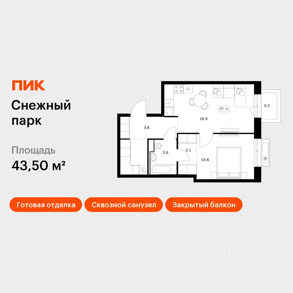 Продаётся 1-комн. квартира площадью 43,5 кв.м на 9 этаже 25 этажного дома (Корпус 4, Секция 2) проекта ПИК Снежный парк. Светлый просторный подъезд на уровне земли, функциональная планировка, большие окна, c отделкой. Жилой квартал ''Снежный парк'' возводится в развитом микрорайоне Владивостока - Снеговой Пади. Рядом уже есть всё для комфортной жизни: 2 школы, детская и взрослая поликлиники, торговый центр и магазины. Проект будет состоять из 7 корпусов, высота которых от 24 до 29 этажей. Благодаря низкой плотности застройки жители будут чувствовать себя комфортно. За счёт переменной этажности в квартиры будет попадать ещё больше естественного света. Из окон последних этажей будет открываться панорамный вид на Амурский залив и лес. В квартирах предусмотрены большие окна, застеклённые балконы и лоджии - будет светло и уютно даже зимой. В жилом квартале появится уникальное общественное пространство с пешеходным бульваром и зонами для отдыха. На первых этажах откроются кафе, магазины и полезные сервисы, куда можно спуститься за горячим кофе или свежеиспечённым хлебом. Из каждого дома будет выход в уютный двор-парк с современными детскими и спортивными площадками. Здесь мы посадим цветы и деревья: будет приятно отдыхать или почитать книгу. Артикул 1050571 (Застройщик ООО ''СЗ ФОРМУЛА-ДВ'')
