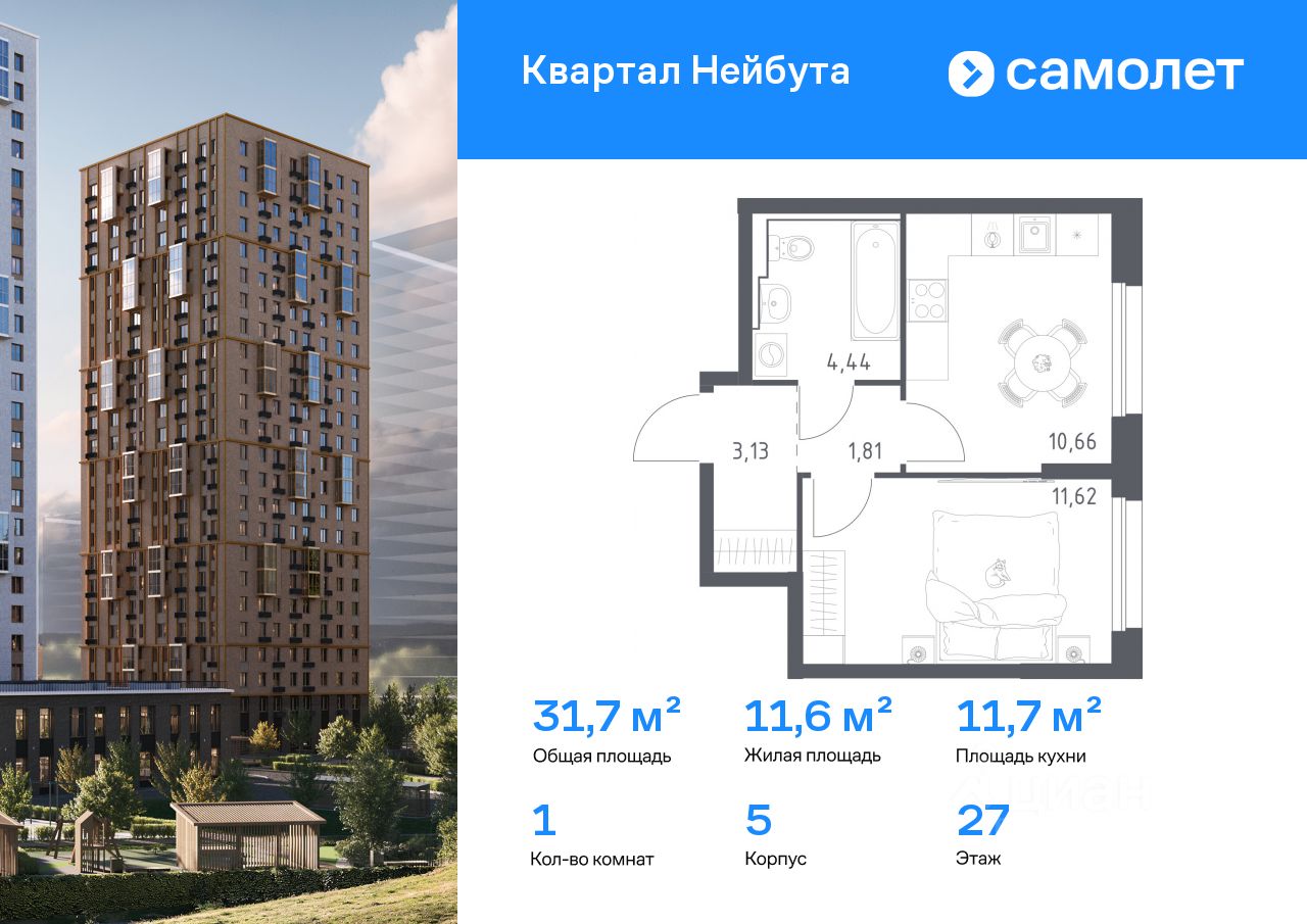 Предлагается 1-комнатная квартира комфорт-класса 31,66 кв.м в корпусе 5 на 27 этаже, в ЖК ''Квартал Нейбута'' Квартира с чистовой отделкой. Доступность дополнительных опций уточняйте у застройщика. Приобрести квартиру возможно по специальным акциям от застройщика, с текущими условиями акций можно ознакомиться в блоке ''Акций''. Цена динамическая и может отличаться, уточняйте актуальность у застройщика. В новом ''Квартале Нейбута'' захочется освободить галерею телефона — чтобы вместить коллекцию по-настоящему захватывающих кадров. В объектив вашей камеры попадут зеленые сопки, бескрайнее небо и другие красоты Приморского края. Квартал находится в одном из районов Владивостока, откуда легко добраться в любую точку города. Дорога до центра города, морского и ж/д вокзалов займет 30 минут на машине или 45 минут на автобусе. Планировать отпуск тоже удобно — международный аэропорт находится в часе езды от дома. Скоро в квартале будет удобный выезд на улицы Нейбута и Фадеева, откуда можно попасть на трассу Патрокл — Седанка — Де-Фриз — Новый. А к старту первой очереди будет готов северный заезд с твердым покрытием. В квартале можно выйти из дома и оказаться в большом парке с экотропами и прогулочными зонами. Выходите на пробежку или на познавательную прогулку с детьми — можно долго рассматривать растения и искать их названия в интернете. Побродите по тропам для терренкура и обязательно побывайте на смотровых площадках — ваша коллекция впечатлений точно пополнится. Вечером отправляйтесь полюбоваться на вантовый мост в свете огней. Вид на него откроется из бухты Золотой Рог, дорога до которой займет 20 минут на авто. Чтобы решать все повседневные дела, даже не обязательно далеко уходить от дома. На первых этажах корпусов откроются салоны красоты, магазины, пункты выдачи и кафе. Забегайте за утренним латте, новой прической или продуктами к обеду. Юным жителям квартала тоже не придется долго шагать по своим важным делам. Рядом с кварталом находятся 3 детских сада, общеобразовательная и школа искусств и развивающий центр ''Пчелкин дом''. А скоро недалеко от проекта появится еще одна школа на 1100 учеников. Ее планируют строить в 2026 году. 26-этажные дома с отделкой золотистых и благородных коричневых оттенков гармонично впишутся в живописный дальневосточный пейзаж. Объем фасадам придают витражные балконы, с которых открываются виды на Уссурийский залив. Закрытые дворы без машин — маленький мир, вдохновленный природой Приморского края. Стены домов украшают дальневосточные лианы, крыши — пышные ковры из трав. Еще мы установим дождевые сады, которые скроют последствия даже самого сильного ливня. Во дворе найдется интересное занятие для всех жителей квартала. Взрослые смогут устраивать тренировки на свежем воздухе в спортивных зонах, дети будут целый день веселиться на игровых площадках. А для четвероногих питомцев мы предусмотрели специальные зоны для выгула. Возвращайтесь домой из отпуска с чемоданом сувениров или самокатом из парка. Мы отказались