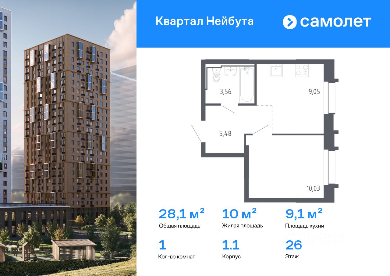 28 м² · Этаж 26 из 26