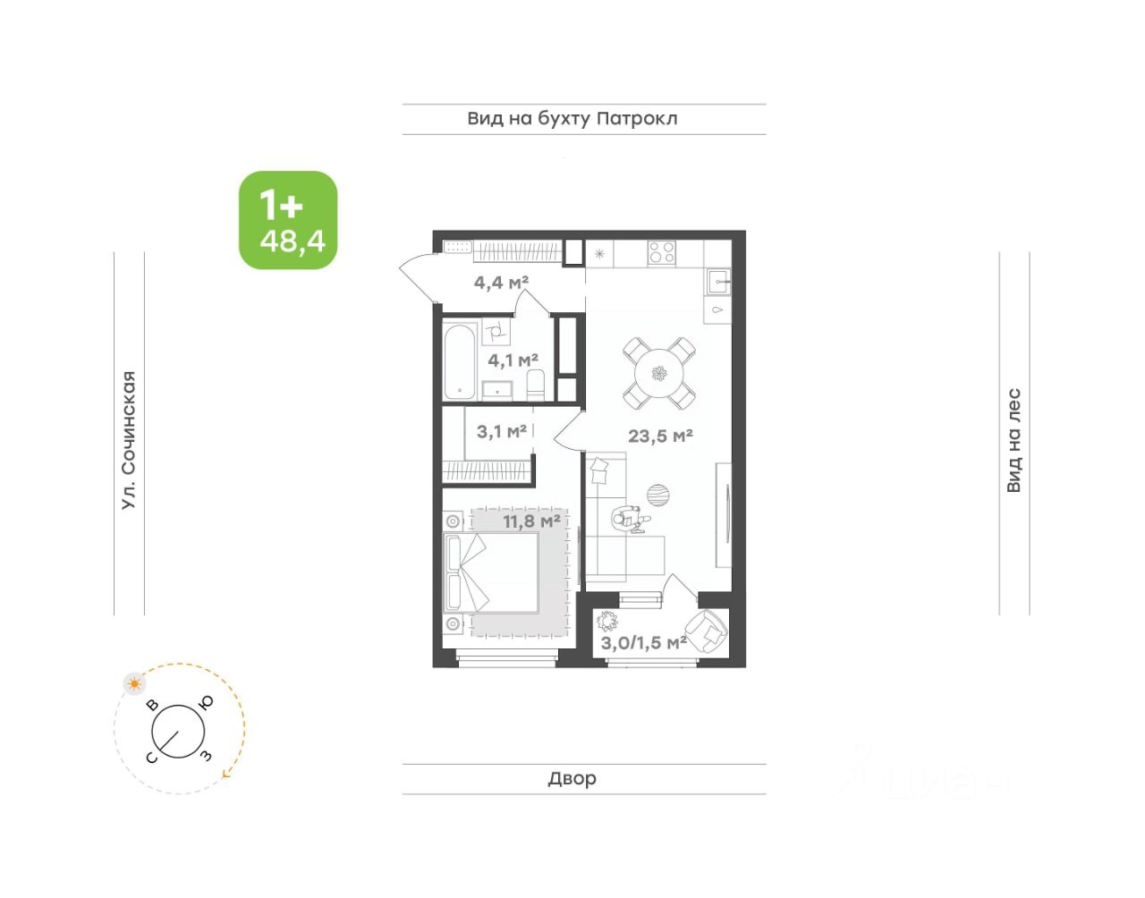 Предлагается 1-комнатная квартира комфорт-класса 28,12 кв.м в корпусе 1.1 на 26 этаже, в ЖК ''Квартал Нейбута'' Квартира с чистовой отделкой. Доступность дополнительных опций уточняйте у застройщика. Приобрести квартиру возможно по специальным акциям от застройщика, с текущими условиями акций можно ознакомиться в блоке ''Акций''. Цена динамическая и может отличаться, уточняйте актуальность у застройщика. В новом ''Квартале Нейбута'' захочется освободить галерею телефона — чтобы вместить коллекцию по-настоящему захватывающих кадров. В объектив вашей камеры попадут зеленые сопки, бескрайнее небо и другие красоты Приморского края. Квартал находится в одном из районов Владивостока, откуда легко добраться в любую точку города. Дорога до центра города, морского и ж/д вокзалов займет 30 минут на машине или 45 минут на автобусе. Планировать отпуск тоже удобно — международный аэропорт находится в часе езды от дома. Скоро в квартале будет удобный выезд на улицы Нейбута и Фадеева, откуда можно попасть на трассу Патрокл — Седанка — Де-Фриз — Новый. А к старту первой очереди будет готов северный заезд с твердым покрытием. В квартале можно выйти из дома и оказаться в большом парке с экотропами и прогулочными зонами. Выходите на пробежку или на познавательную прогулку с детьми — можно долго рассматривать растения и искать их названия в интернете. Побродите по тропам для терренкура и обязательно побывайте на смотровых площадках — ваша коллекция впечатлений точно пополнится. Вечером отправляйтесь полюбоваться на вантовый мост в свете огней. Вид на него откроется из бухты Золотой Рог, дорога до которой займет 20 минут на авто. Чтобы решать все повседневные дела, даже не обязательно далеко уходить от дома. На первых этажах корпусов откроются салоны красоты, магазины, пункты выдачи и кафе. Забегайте за утренним латте, новой прической или продуктами к обеду. Юным жителям квартала тоже не придется долго шагать по своим важным делам. Рядом с кварталом находятся 3 детских сада, общеобразовательная и школа искусств и развивающий центр ''Пчелкин дом''. А скоро недалеко от проекта появится еще одна школа на 1100 учеников. Ее планируют строить в 2026 году. 26-этажные дома с отделкой золотистых и благородных коричневых оттенков гармонично впишутся в живописный дальневосточный пейзаж. Объем фасадам придают витражные балконы, с которых открываются виды на Уссурийский залив. Закрытые дворы без машин — маленький мир, вдохновленный природой Приморского края. Стены домов украшают дальневосточные лианы, крыши — пышные ковры из трав. Еще мы установим дождевые сады, которые скроют последствия даже самого сильного ливня. Во дворе найдется интересное занятие для всех жителей квартала. Взрослые смогут устраивать тренировки на свежем воздухе в спортивных зонах, дети будут целый день веселиться на игровых площадках. А для четвероногих питомцев мы предусмотрели специальные зоны для выгула. Возвращайтесь домой из отпуска с чемоданом сувениров или самокатом из парка. Мы отказалис