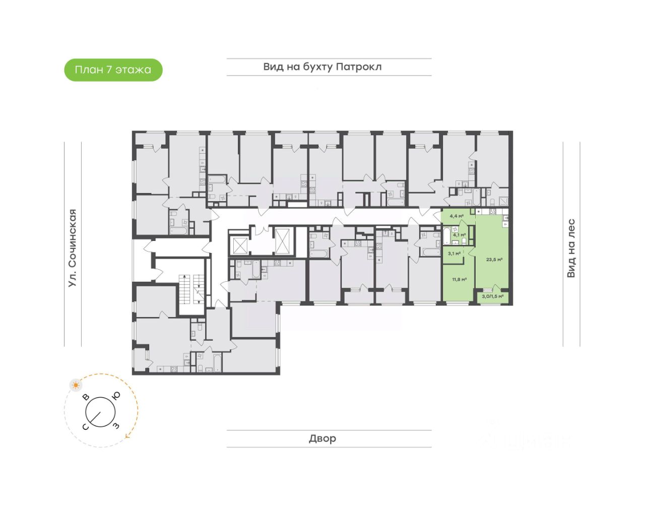 Предлагается квартира студия комфорт-класса 24,12 кв.м в корпусе 6 на 25 этаже, в ЖК ''Квартал Нейбута'' Квартира с предчистовой отделкой. Доступность дополнительных опций уточняйте у застройщика. Приобрести квартиру возможно по специальным акциям от застройщика, с текущими условиями акций можно ознакомиться в блоке ''Акций''. Цена динамическая и может отличаться, уточняйте актуальность у застройщика. В новом ''Квартале Нейбута'' захочется освободить галерею телефона — чтобы вместить коллекцию по-настоящему захватывающих кадров. В объектив вашей камеры попадут зеленые сопки, бескрайнее небо и другие красоты Приморского края. Квартал находится в одном из районов Владивостока, откуда легко добраться в любую точку города. Дорога до центра города, морского и ж/д вокзалов займет 30 минут на машине или 45 минут на автобусе. Планировать отпуск тоже удобно — международный аэропорт находится в часе езды от дома. Скоро в квартале будет удобный выезд на улицы Нейбута и Фадеева, откуда можно попасть на трассу Патрокл — Седанка — Де-Фриз — Новый. А к старту первой очереди будет готов северный заезд с твердым покрытием. В квартале можно выйти из дома и оказаться в большом парке с экотропами и прогулочными зонами. Выходите на пробежку или на познавательную прогулку с детьми — можно долго рассматривать растения и искать их названия в интернете. Побродите по тропам для терренкура и обязательно побывайте на смотровых площадках — ваша коллекция впечатлений точно пополнится. Вечером отправляйтесь полюбоваться на вантовый мост в свете огней. Вид на него откроется из бухты Золотой Рог, дорога до которой займет 20 минут на авто. Чтобы решать все повседневные дела, даже не обязательно далеко уходить от дома. На первых этажах корпусов откроются салоны красоты, магазины, пункты выдачи и кафе. Забегайте за утренним латте, новой прической или продуктами к обеду. Юным жителям квартала тоже не придется долго шагать по своим важным делам. Рядом с кварталом находятся 3 детских сада, общеобразовательная и школа искусств и развивающий центр ''Пчелкин дом''. А скоро недалеко от проекта появится еще одна школа на 1100 учеников. Ее планируют строить в 2026 году. 26-этажные дома с отделкой золотистых и благородных коричневых оттенков гармонично впишутся в живописный дальневосточный пейзаж. Объем фасадам придают витражные балконы, с которых открываются виды на Уссурийский залив. Закрытые дворы без машин — маленький мир, вдохновленный природой Приморского края. Стены домов украшают дальневосточные лианы, крыши — пышные ковры из трав. Еще мы установим дождевые сады, которые скроют последствия даже самого сильного ливня. Во дворе найдется интересное занятие для всех жителей квартала. Взрослые смогут устраивать тренировки на свежем воздухе в спортивных зонах, дети будут целый день веселиться на игровых площадках. А для четвероногих питомцев мы предусмотрели специальные зоны для выгула. Возвращайтесь домой из отпуска с чемоданом сувениров или самокатом из парка. Мы отказались о
