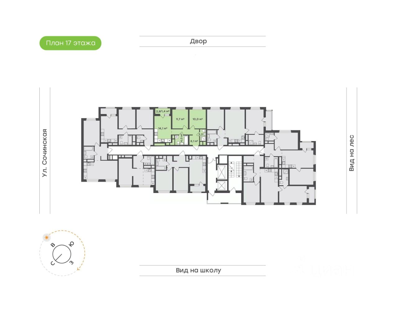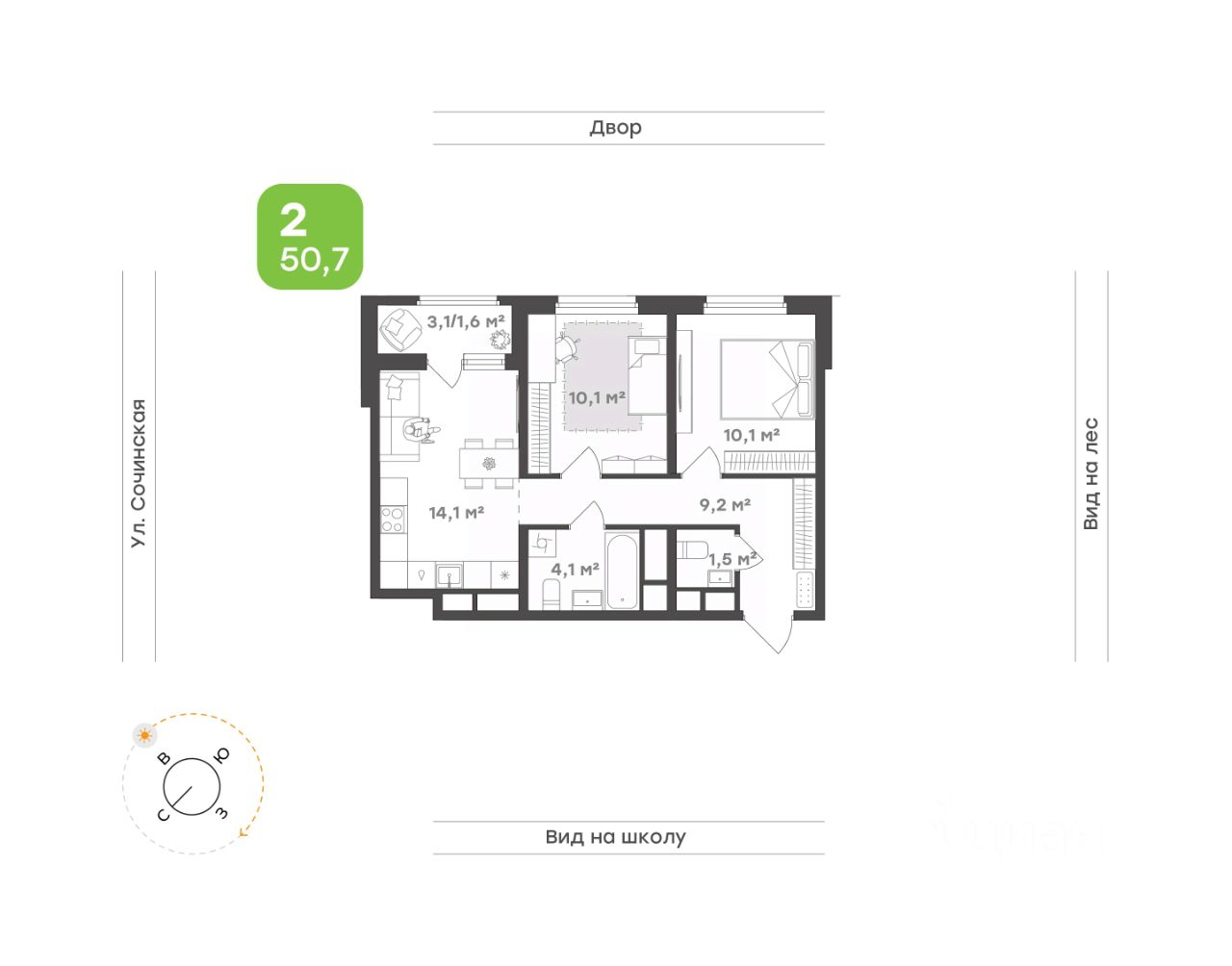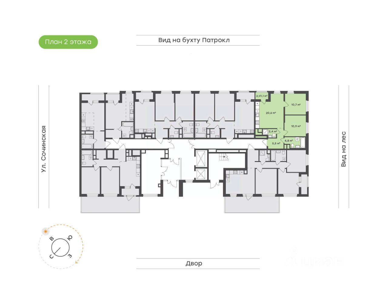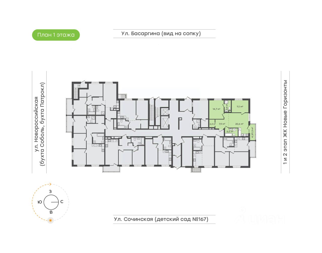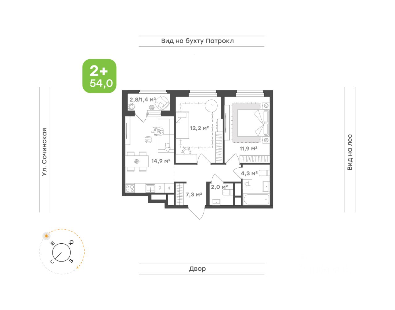 Большой коридор 7,9 кв.м. с отдельным пространством под гардероб 2,4 кв.м для грамотного хранения всех вещей Мастер-спальня 14,7 кв.м. с видом на природу и отдельным санузлом 3,8 кв.м. для спокойных вечеров Приватная детская 11,1 кв.м. для комфортного отдыха каждого члена семьи Кухня-гостиная 20,6 кв.м. с панорамными окнами и выходом на балкон с видом на тихий внутренний двор Увеличенная ванная 5,6 кв.м. для удобства всей семьи