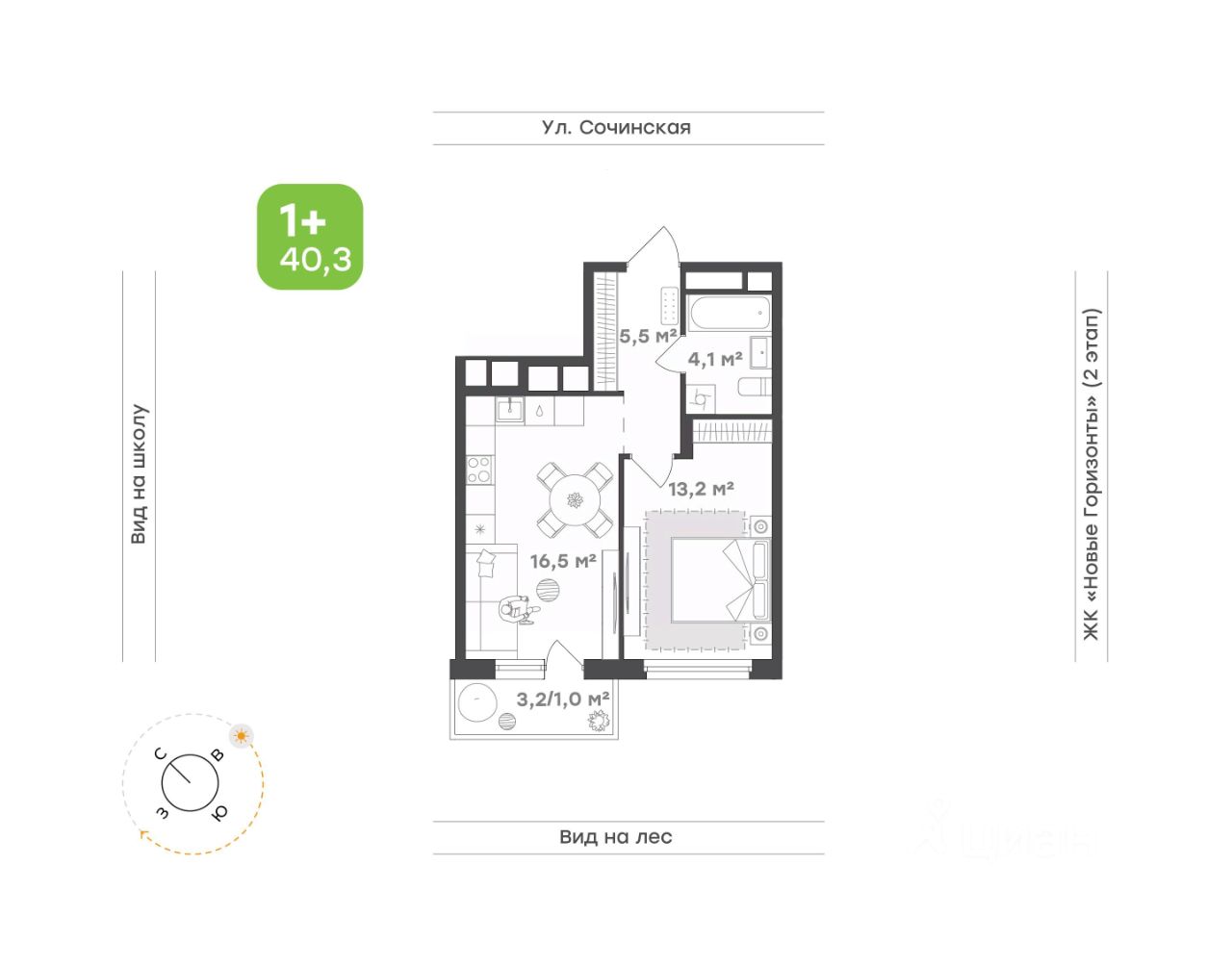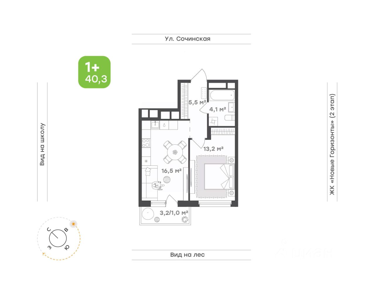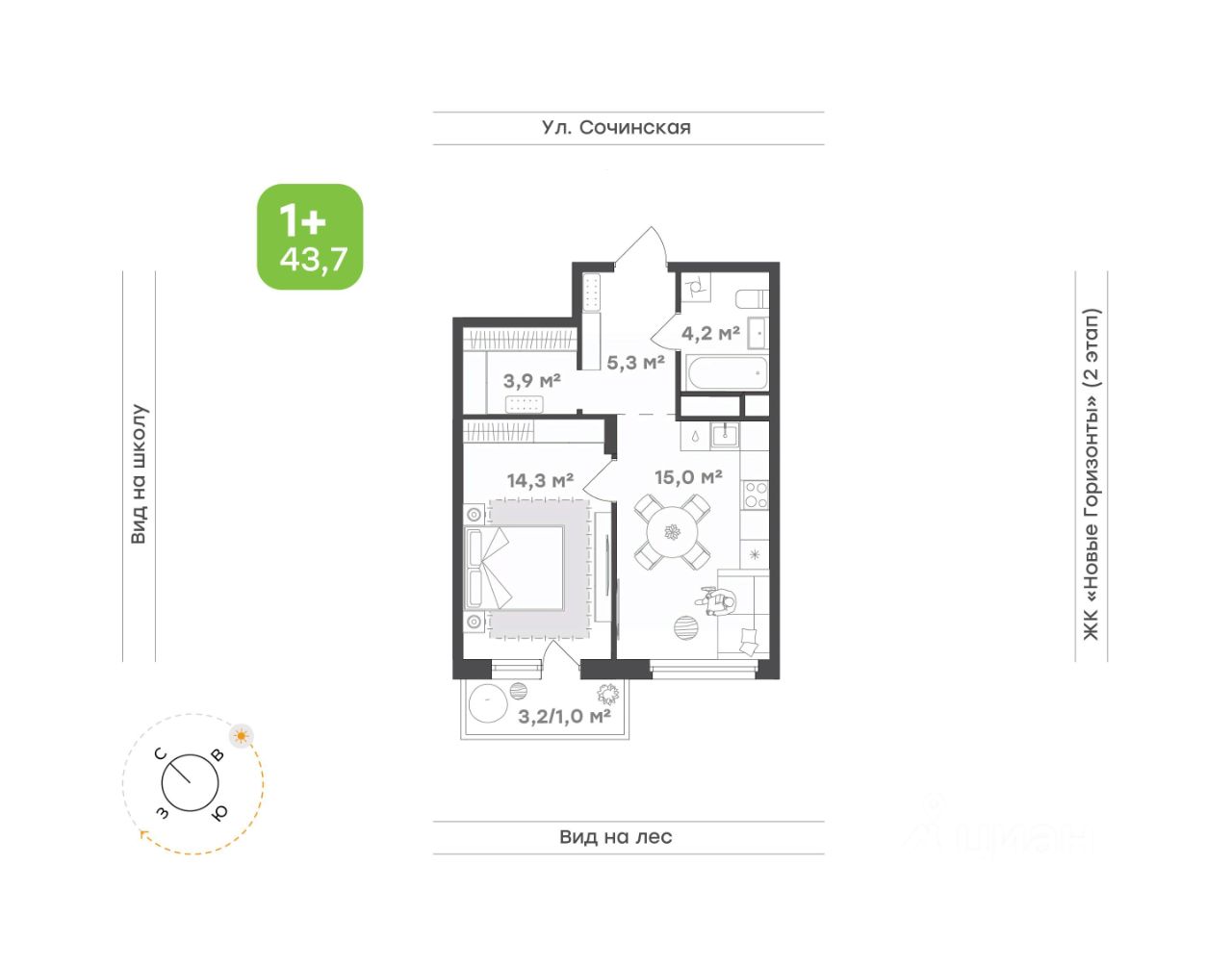 2-к, Новые Горизонты ЖК, 3 корп. 1