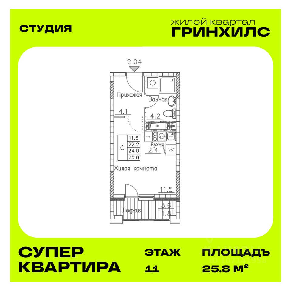 20 м² · Этаж 11 из 25