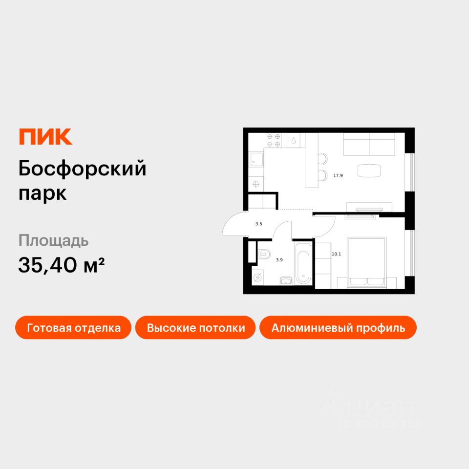 1-к, Босфорский Парк ЖК, 9
