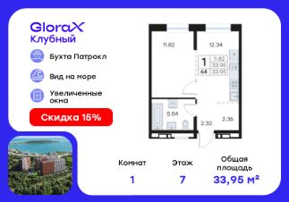 Продается 2-комн. квартира на 11-м этаже в квартале GloraX Клубный. GloraX Клубный - уникальный видовой проект с выделяющейся архитектурой в развитом районе Владивостока. Общая площадь лота составляет 46,59 кв. м, из которых 25,37 кв. м отведено под жилую и 12,66 кв. м под кухонную зону. Номер квартиры - 107.Преимущества квартиры:двухкомнатная квартира, угловая.Преимущества проекта:• Квартиры с панорамными видами на бухту Патрокл, маяк Басаргина и остров Русский• Планировочные решения под любой жизненный сценарий от 23 до 67 м²• Гардеробные комнаты, увеличенные панорамные окна, просторные кухни-гостиные• Эксклюзивное благоустройство: продуманное зонирование, игровые и спортивные площадки, площадка для стритбола, амфитеатр• Премиальный дизайн входных групп с лаунж-зоной• Безбарьерная среда, закрытая территория, видеонаблюдение• Лапомойки, колясочные и туалеты на первом этаже• Двухуровневый подземный паркинг на 350 машино-мест с лифтом на жилые этажи• Келлеры на цокольном этаже для хранения сезонных вещей с доступом на лифте• Современный ландшафтный дизайн комплекса от DEREVOPARKGloraX Клубный заповедник в черте мегаполиса. Комплекс тщательно продуман для максимального удобства и обеспечения безопасности его жителей. Квартал расположен в одном из самых современных развивающихся районов города: совсем рядом раскинулась живописная бухта Патрокл, где можно прогуляться по облагороженной пешеходной набережной, заглянуть на пляж или в школу серфинга. Комплекс имеет прекрасную транспортную доступность: рядом проходит объездная трасса СеданкаПатрокл, а до центар можно доехать всего за 15 минут.Проект включает 3 монолитных корпуса, каждый из которых спроектирован с акцентом на комфорт, безопасность и современный образ жизни рядом с уникальной природой. Общий двор создает приватную территорию для житей комплекса.В комплексе предусмотрен двухуровневый подземный паркинг на 350 машино-мест с доступом прямо с жилых этажей. Паркинг оборудован современными системами видеонаблюдения, контроля въезда-выезда и пожаротушения. На цокольном этаже размещаются келлеры для хранения сезонных и габаритных вещей. Доступ к кладовым на лифте с жилых этажей. Современный ландшафтный дизайн жилого комплекса GloraX Клубный создан ведущей российской студией DEREVOPARK. Во дворе для детей всех возрастов предусмотрены различные игровые площадки с лазалками, батутами, качелями и песочницей. В центре расположен специальный ''зеленый остров'', где взрослые могут отдохнуть на качелях и гамаках в тени больших деревьев. Для любителей спорта предусмотрены две специальные спортивные площадки для настольного тенниса и стритбола — для зрителей тоже найдется место! А еще на территории комплекса будет дорожка для роллеров и любителей покататься на велосипеде, самокате или скейте.В шаговой доступности располагаются все необходимые объекты социальной и коммерческой инфраструктуры.Цена указана при 100% оп