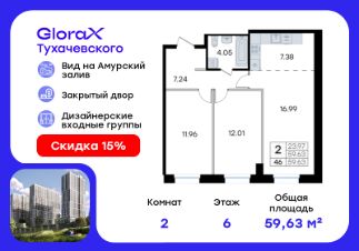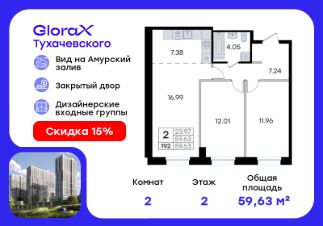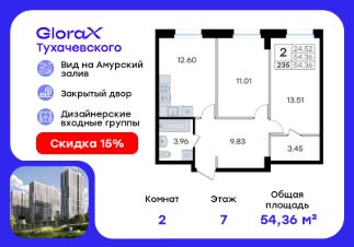 Продается квартира-студия на 17-м этаже в жилом комплексе GloraX Тухачевского — современном проекте нового формата в престижном районе Владивостока. Общая площадь лота составляет 29,47 кв. м, из которых 13,56 кв. м отведено под жилую и 5,13 кв. м под кухонную зону. Номер квартиры - 128.Преимущества квартиры:студия, высокий этаж.Преимущества проекта:• Панорамный вид на Амурский залив и зелёные сопки• Удачное расположение и транспортная доступность: Первореченский район, 20 минут до центра города• Закрытая охраняемая территория с доступом только для жителей• Эксклюзивное благоустройство: продуманное зонирование, игровые и спортивные площадки, арт-инсталляция, Тайный сад• Безбарьерная среда, видеонаблюдений, Wi-Fi на территории• Премиальный дизайн входных групп реcепшн и лаунж-зоной• Лапомойки, колясочные и туалеты на первом этаже• Подземный паркинг на 449 машиномест с доступом на лифте с жилых этажей• Индивидуальные кладовые на цокольном этаже от 2 до 10 м2GloraX Тухачевского — это городское пространство нового формата, которое позволяет современным горожанам находить все необходимые атрибуты комфортной жизни внутри своего жилого комплекса. Весь комплекс спроектирован так, чтобы жить здесь было удобно и безопасно: светлые лаунж-зоны и ресепшн на входах в жилые корпуса, эксклюзивный дизайн мест общего пользования и придомовой территории, круглосуточная охрана, видеонаблюдение и даже детский сад в одном из корпусов все, что необходимо современному городскому жителю. GloraX Тухачевского находится в одном из самых престижных районов города с хорошей, давно сформировавшейся инфраструктурой и отличной транспортной доступностью. Отсюда легко добраться до центра города, других районов и даже пригорода как на собственном транспорте, так и на общественном. Квартал имеет прямой выезд на ул. Тухачевского, а рядом с комплексом расположена автобусная остановка на несколько маршрутов.Проект состоит из 3 монолитных корпусов, объединенных единым стилобатом. В комплексе предусмотрены: подземный паркинг с лифтом на жилые этажи, кладовые для хранения, благоустроенный двор без машин, детские и спортивные площадки, зоны для отдыха и прогулок.Эксклюзивный проект благоустройства территории разработан одной из лучших студий ландшафтного дизайна DEREVOPARK с фокусом на комфорт и удобство для всех жителей комплекса.Вся необходимая инфраструктура — магазины, школы, детские сады, остановки общественного транспорта — находится рядом.Узнайте подробности и подберите свою квартиру в GloraX Тухачевского — в отделе продаж уже сегодня.Цена указана при 100% оплате или стандартной ипотеке. Узнайте подробности в Отделе продаж.