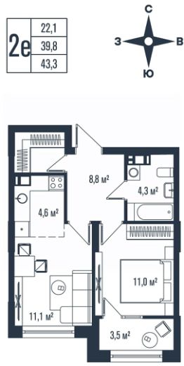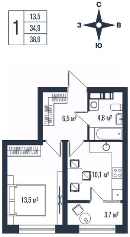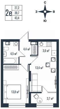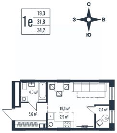 34 м2