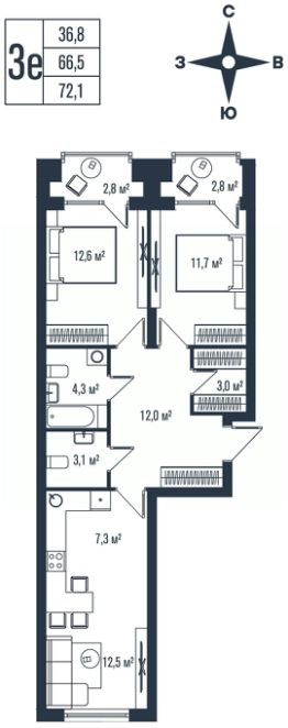 Продаётся 3-комнатная квартира в сданном доме (Тухачевского, 33к2 (Футурист)), срок сдачи: IV-кв. 2025, общей площадью 72.7 кв.м., на 15 этаже. Новый жилой комплекс ''Футурист'' от застройщика ''СИК Девеломпент-юг'' расположен по адресу город Владивосток, улица Карбышева.