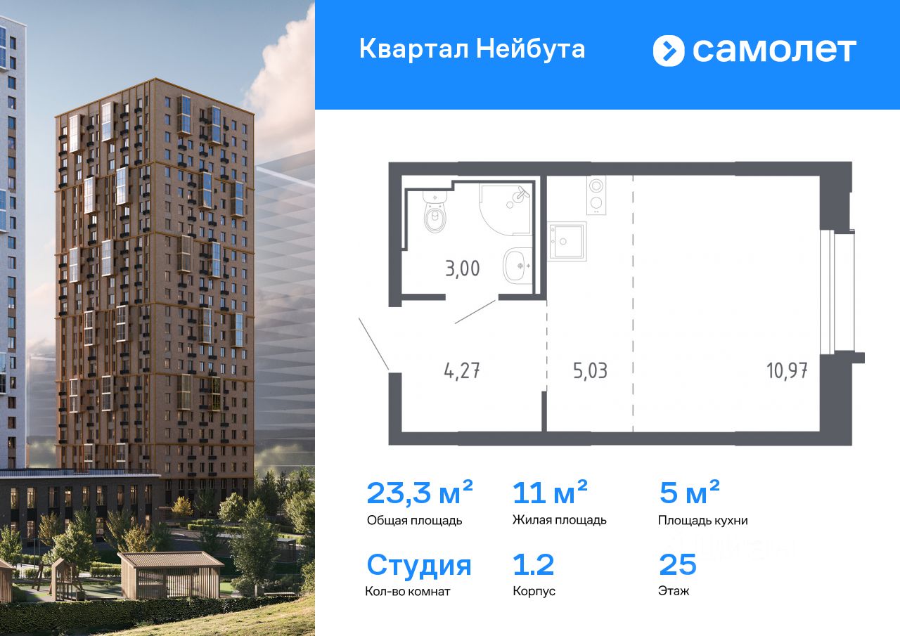 Строим кварталы для жизни с заботой о будущем. Предлагается квартира студия комфорт-класса 23,27 кв.м в корпусе 1.2 на 25 этаже, в ЖК ''Квартал Нейбута'' Квартира с чистовой отделкой. Доступность дополнительных опций уточняйте у застройщика. Приобрести квартиру возможно по специальным акциям от застройщика, с текущими условиями акций можно ознакомиться в блоке ''Акций''. Цена динамическая и может отличаться, уточняйте актуальность у застройщика. В новом ''Квартале Нейбута'' захочется освободить галерею телефона — чтобы вместить коллекцию по-настоящему захватывающих кадров. В объектив вашей камеры попадут зеленые сопки, бескрайнее небо и другие красоты Приморского края. Квартал находится в одном из районов Владивостока, откуда легко добраться в любую точку города. Дорога до центра города, морского и ж/д вокзалов займет 30 минут на машине или 45 минут на автобусе. Планировать отпуск тоже удобно — международный аэропорт находится в часе езды от дома. Скоро в квартале будет удобный выезд на улицы Нейбута и Фадеева, откуда можно попасть на трассу Патрокл — Седанка — Де-Фриз — Новый. А к старту первой очереди будет готов северный заезд с твердым покрытием. В квартале можно выйти из дома и оказаться в большом парке с экотропами и прогулочными зонами. Выходите на пробежку или на познавательную прогулку с детьми — можно долго рассматривать растения и искать их названия в интернете. Побродите по тропам для терренкура и обязательно побывайте на смотровых площадках — ваша коллекция впечатлений точно пополнится. Вечером отправляйтесь полюбоваться на вантовый мост в свете огней. Вид на него откроется из бухты Золотой Рог, дорога до которой займет 20 минут на авто. Чтобы решать все повседневные дела, даже не обязательно далеко уходить от дома. На первых этажах корпусов откроются салоны красоты, магазины, пункты выдачи и кафе. Забегайте за утренним латте, новой прической или продуктами к обеду. Юным жителям квартала тоже не придется долго шагать по своим важным делам. Рядом с кварталом находятся 3 детских сада, общеобразовательная и школа искусств и развивающий центр ''Пчелкин дом''. А скоро недалеко от проекта появится еще одна школа на 1100 учеников. Ее планируют строить в 2026 году. 26-этажные дома с отделкой золотистых и благородных коричневых оттенков гармонично впишутся в живописный дальневосточный пейзаж. Объем фасадам придают витражные балконы, с которых открываются виды на Уссурийский залив. Закрытые дворы без машин — маленький мир, вдохновленный природой Приморского края. Стены домов украшают дальневосточные лианы, крыши — пышные ковры из трав. Еще мы установим дождевые сады, которые скроют последствия даже самого сильного ливня. Во дворе найдется интересное занятие для всех жителей квартала. Взрослые смогут устраивать тренировки на свежем воздухе в спортивных зонах, дети будут целый день веселиться на игровых площадках. А для четвероногих питомцев мы предусмотрели специальные зоны для выгула. Возвращайтесь домой из отпуска с чемоданом суве