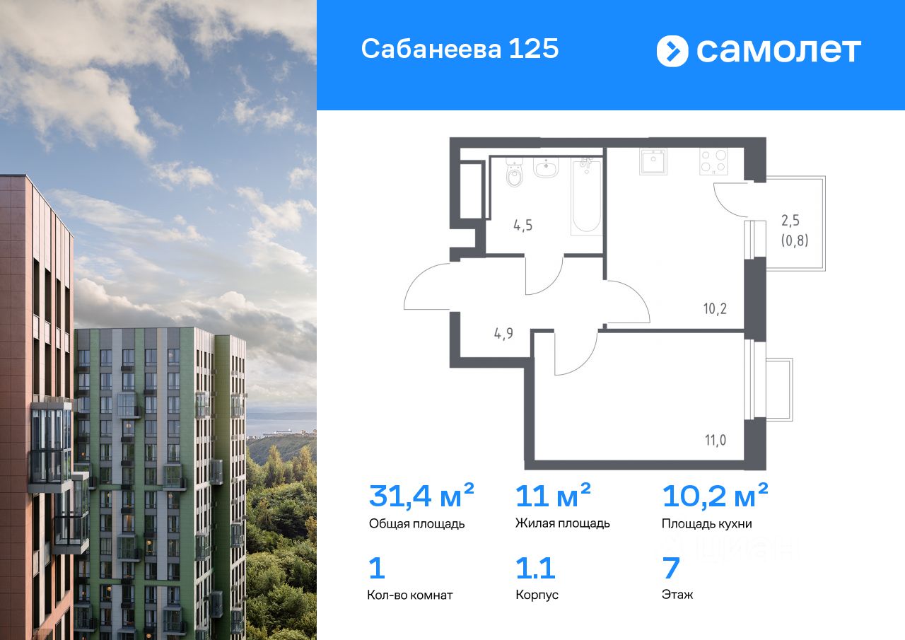 Строим кварталы для жизни с заботой о будущем. Предлагается 1-комнатная квартира комфорт-класса 31,4 кв.м в корпусе 1.1 на 7 этаже, в ЖК ''Сабанеева 125'' Квартира без отделки. Доступность опции ''отделка'' и возможность комплектации мебелью и декором уточняйте у застройщика. Приобрести квартиру возможно по специальным акциям от застройщика, с текущими условиями акций можно ознакомиться в блоке ''Акций''. Цена динамическая и может отличаться, уточняйте актуальность у застройщика. В жилом комплексе ''Сабанеева 125'' вы ежедневно будете наслаждаться видами сопок. Холмистый рельеф защищает территорию от ветра. Комплекс расположен в Первореченском районе Владивостока, всего в 20 минутах на машине до центра города. На первых этажах откроются супермаркеты, кафе и пекарни. Для малышей — детский сад в 2 минутах пешком и школа в 10 минутах. За 6 минут можно доехать до Нагорного парка, а за 15 минут — до набережной Цесаревича с панорамой Золотого моста. Комплекс состоит из 3 монолитных домов высотой 25 этажей с фасадами, дизайн которых вдохновлен птицами Дальнего Востока. Дворы оформлены как сад с дальневосточной флорой, есть смотровые площадки, скалодром, перголы и игровые зоны для детей. Подземный паркинг — трехуровневый. В сквозные подъезды без ступеней и с помещением для колясок удобно заходить. В жилом комплексе ''Сабанеева 125'' есть квартиры с индивидуальными зелеными террасами, увеличенными окнами и панорамными балконами для чаепитий с видом на сопки и залив.