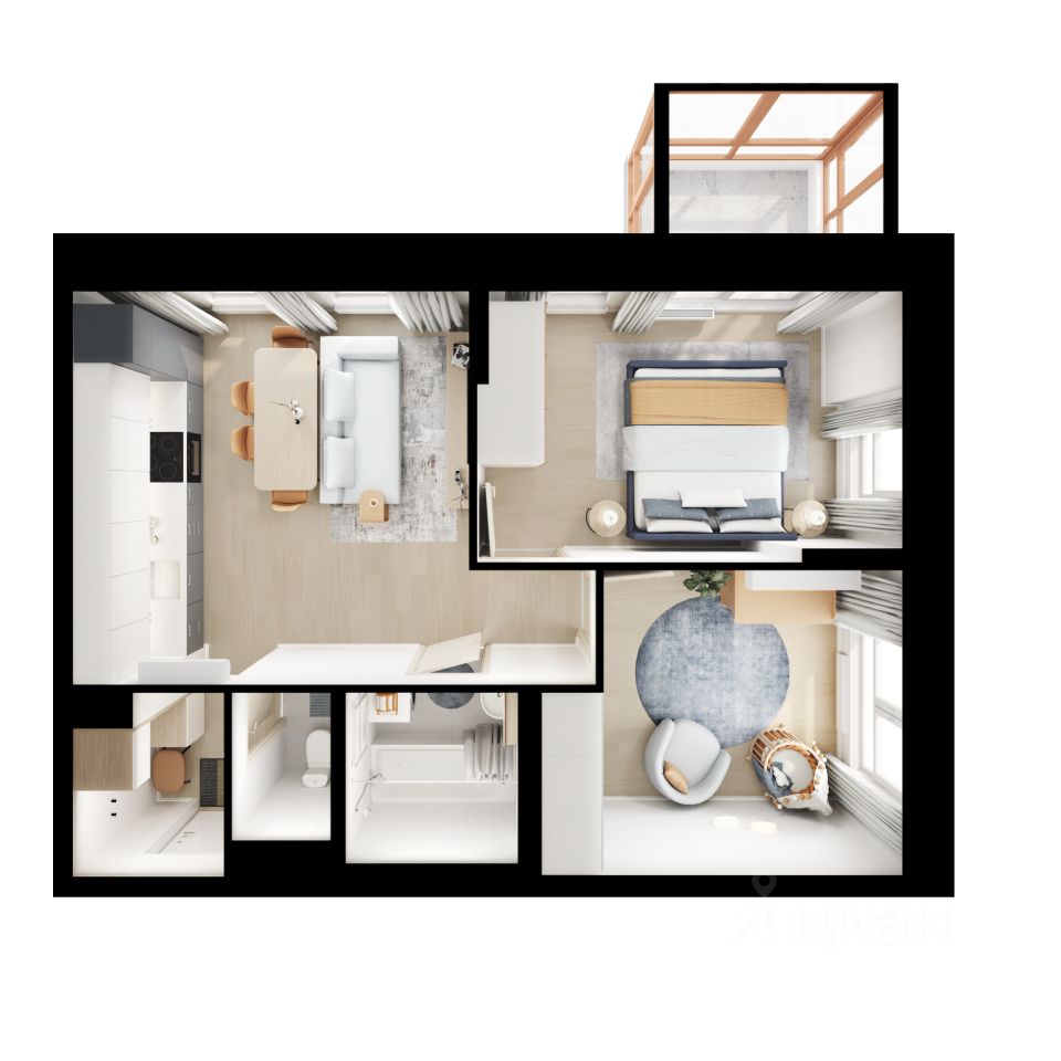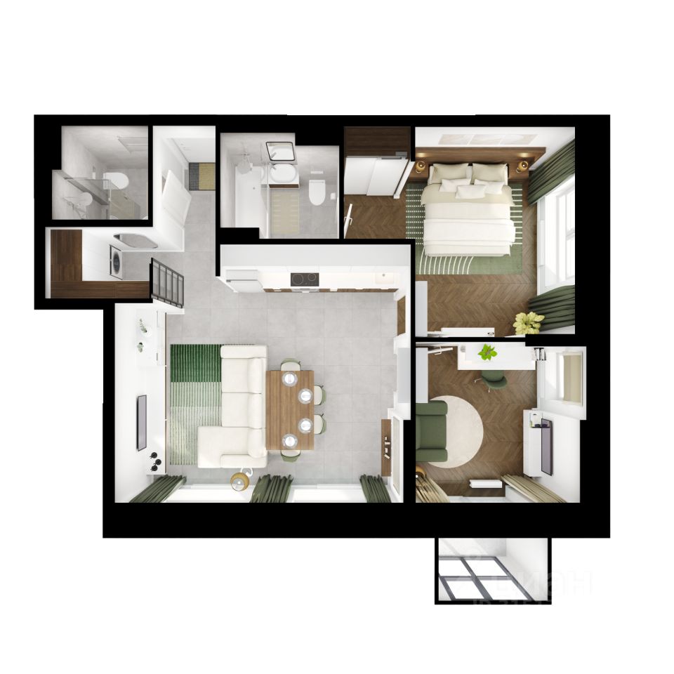 Продаётся 2-комнатная квартира в строящемся доме (Дом 1), срок сдачи: II-кв. 2027, общей площадью 57.26 кв.м., на 21 этаже.