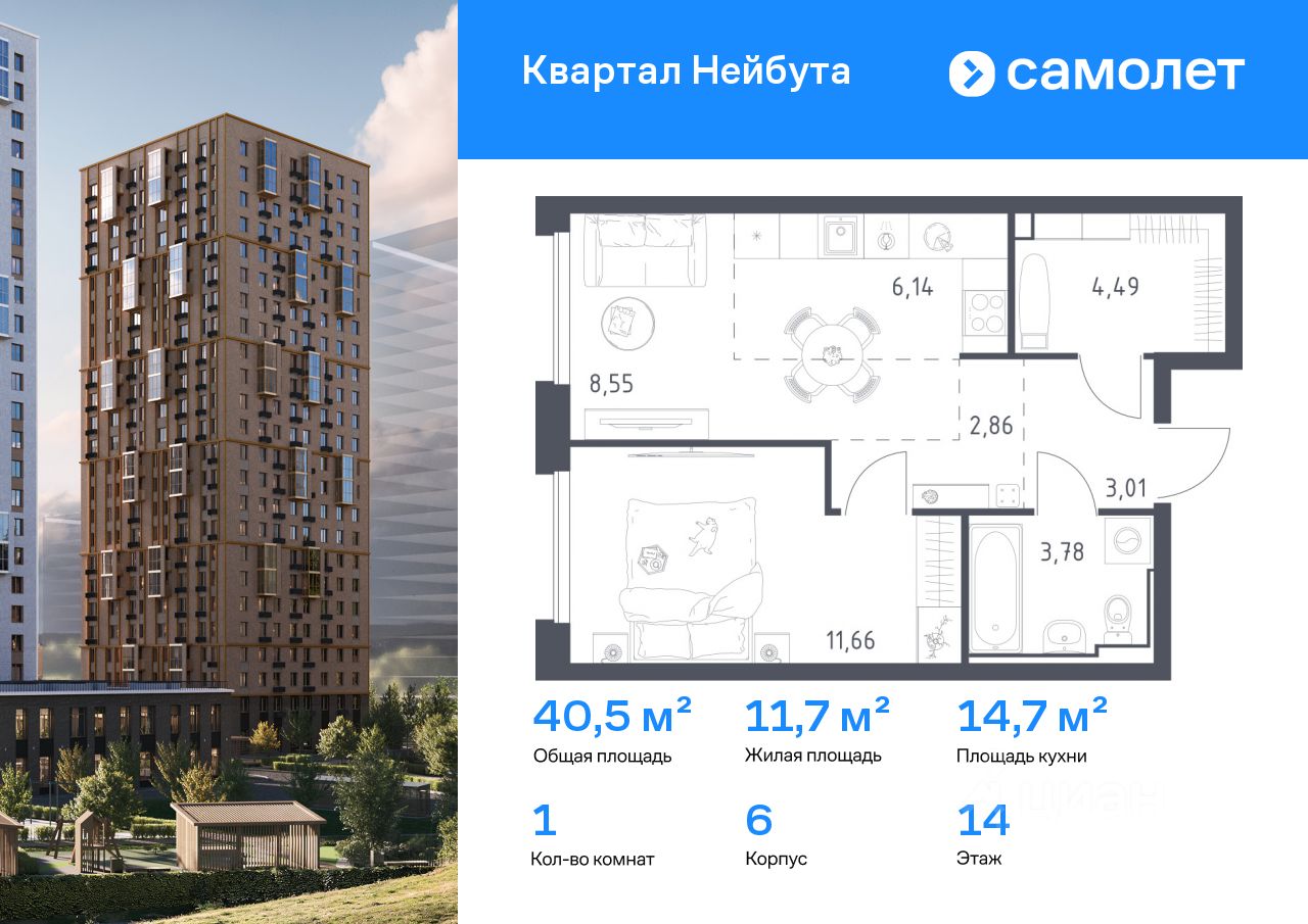 Строим кварталы для жизни с заботой о будущем. Предлагается 1-комнатная квартира комфорт-класса 40,49 кв.м в корпусе 6 на 14 этаже, в ЖК ''Квартал Нейбута'' Квартира с предчистовой отделкой. Доступность дополнительных опций уточняйте у застройщика. Приобрести квартиру возможно по специальным акциям от застройщика, с текущими условиями акций можно ознакомиться в блоке ''Акций''. Цена динамическая и может отличаться, уточняйте актуальность у застройщика. ''Квартал Нейбута'' находится в Ленинском районе Владивостока. Дорога до центра города, морского и ж/д вокзалов займет 30 минут на машине или 45 минут на автобусе. Международный аэропорт находится в часе езды от дома. Скоро в квартале будет удобный выезд, откуда можно попасть на трассу Патрокл — Седанка — Де-Фриз — Новый. 26-этажные дома с отделкой золотистых и благородных коричневых оттенков гармонично впишутся в живописный дальневосточный пейзаж. Объем фасадам придают витражные балконы. Закрытые дворы без машин — маленький мир, вдохновленный природой Приморского края. Во дворе найдется занятие для всех жителей квартала. Взрослые смогут устраивать тренировки в спортивных зонах, дети будут веселиться на игровых площадках. А для четвероногих питомцев мы предусмотрели специальные зоны для выгула. Мы отказались от ступенек и порогов у входов в подъезд. Оставить коляску или велосипед можно на первом этаже, в специальном помещении. На подземном этаже предусмотрены кладовые.