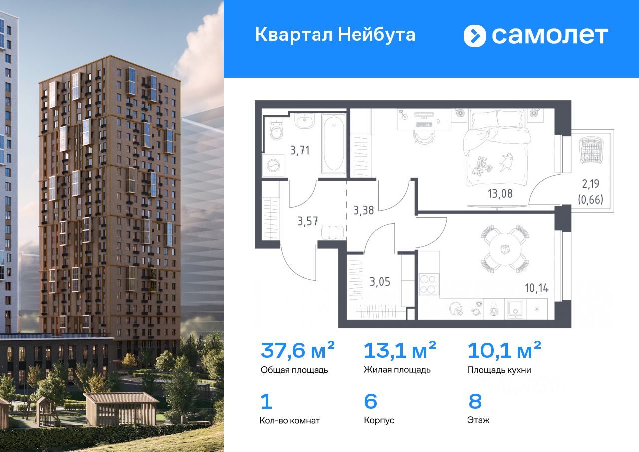 Строим кварталы для жизни с заботой о будущем. Предлагается 1-комнатная квартира комфорт-класса 37,59 кв.м в корпусе 6 на 8 этаже, в ЖК ''Квартал Нейбута'' Квартира с предчистовой отделкой. Доступность дополнительных опций уточняйте у застройщика. Приобрести квартиру возможно по специальным акциям от застройщика, с текущими условиями акций можно ознакомиться в блоке ''Акций''. Цена динамическая и может отличаться, уточняйте актуальность у застройщика. ''Квартал Нейбута'' находится в Ленинском районе Владивостока. Дорога до центра города, морского и ж/д вокзалов займет 30 минут на машине или 45 минут на автобусе. Международный аэропорт находится в часе езды от дома. Скоро в квартале будет удобный выезд, откуда можно попасть на трассу Патрокл — Седанка — Де-Фриз — Новый. 26-этажные дома с отделкой золотистых и благородных коричневых оттенков гармонично впишутся в живописный дальневосточный пейзаж. Объем фасадам придают витражные балконы. Закрытые дворы без машин — маленький мир, вдохновленный природой Приморского края. Во дворе найдется занятие для всех жителей квартала. Взрослые смогут устраивать тренировки в спортивных зонах, дети будут веселиться на игровых площадках. А для четвероногих питомцев мы предусмотрели специальные зоны для выгула. Мы отказались от ступенек и порогов у входов в подъезд. Оставить коляску или велосипед можно на первом этаже, в специальном помещении. На подземном этаже предусмотрены кладовые.